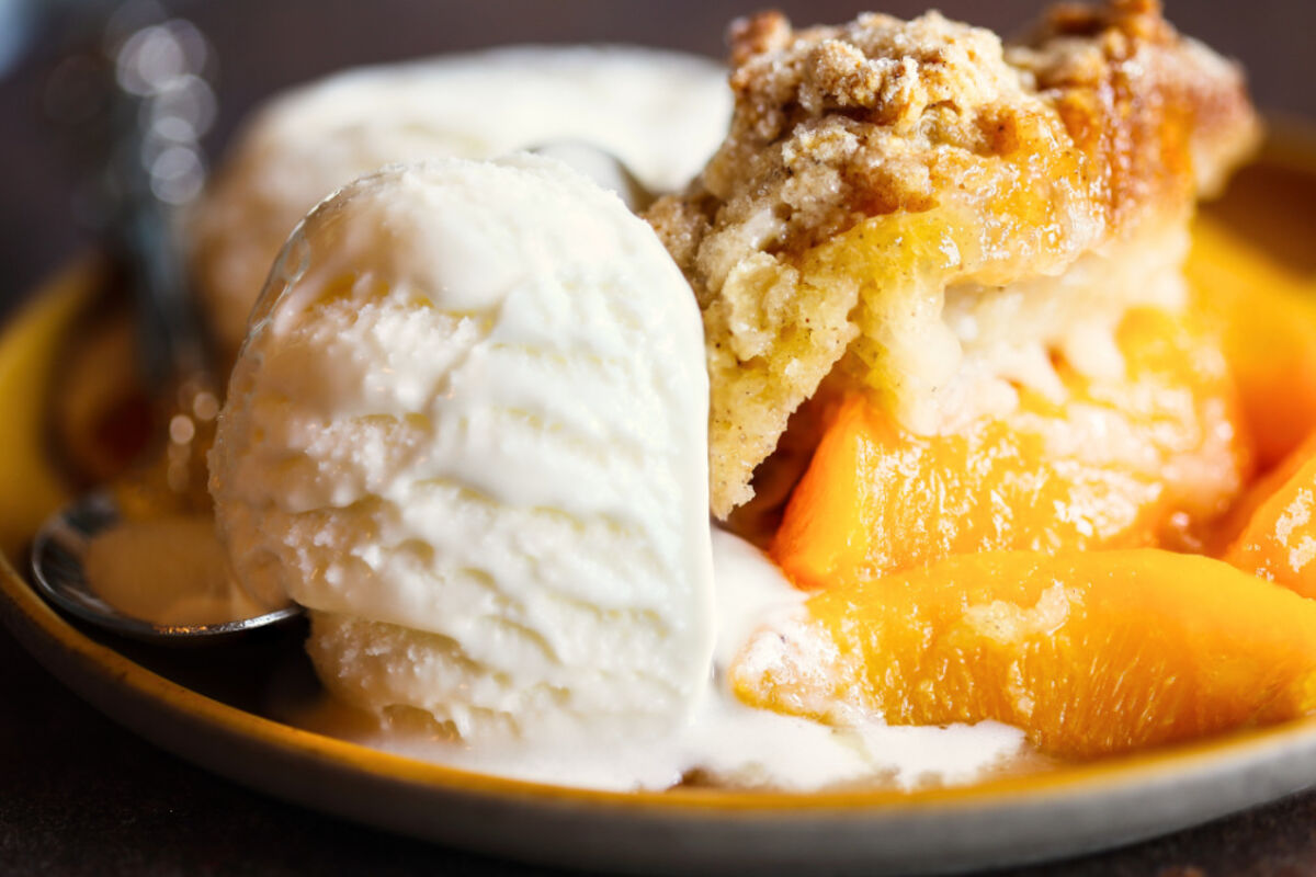 Georgia eventually overtook Delaware as the Peach State—and today, peaches are a bumper crop for the state's agricultural endeavors, helping to make peach cobbler its official dessert. It's worth noting that a cobbler is an entirely different sort of dessert than a pie—with a cobbler more often than not lacking a bottom crust and featuring a less refined, more rough-hewn and crumbly, or cakey, topping.