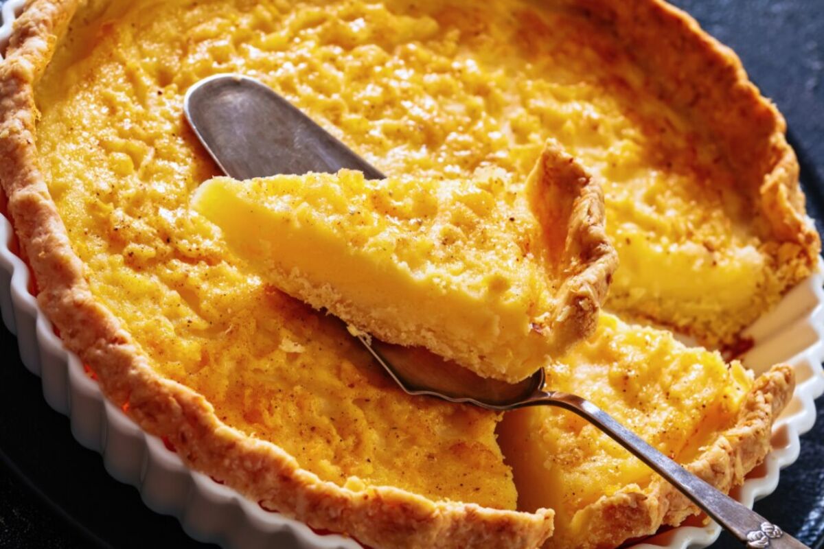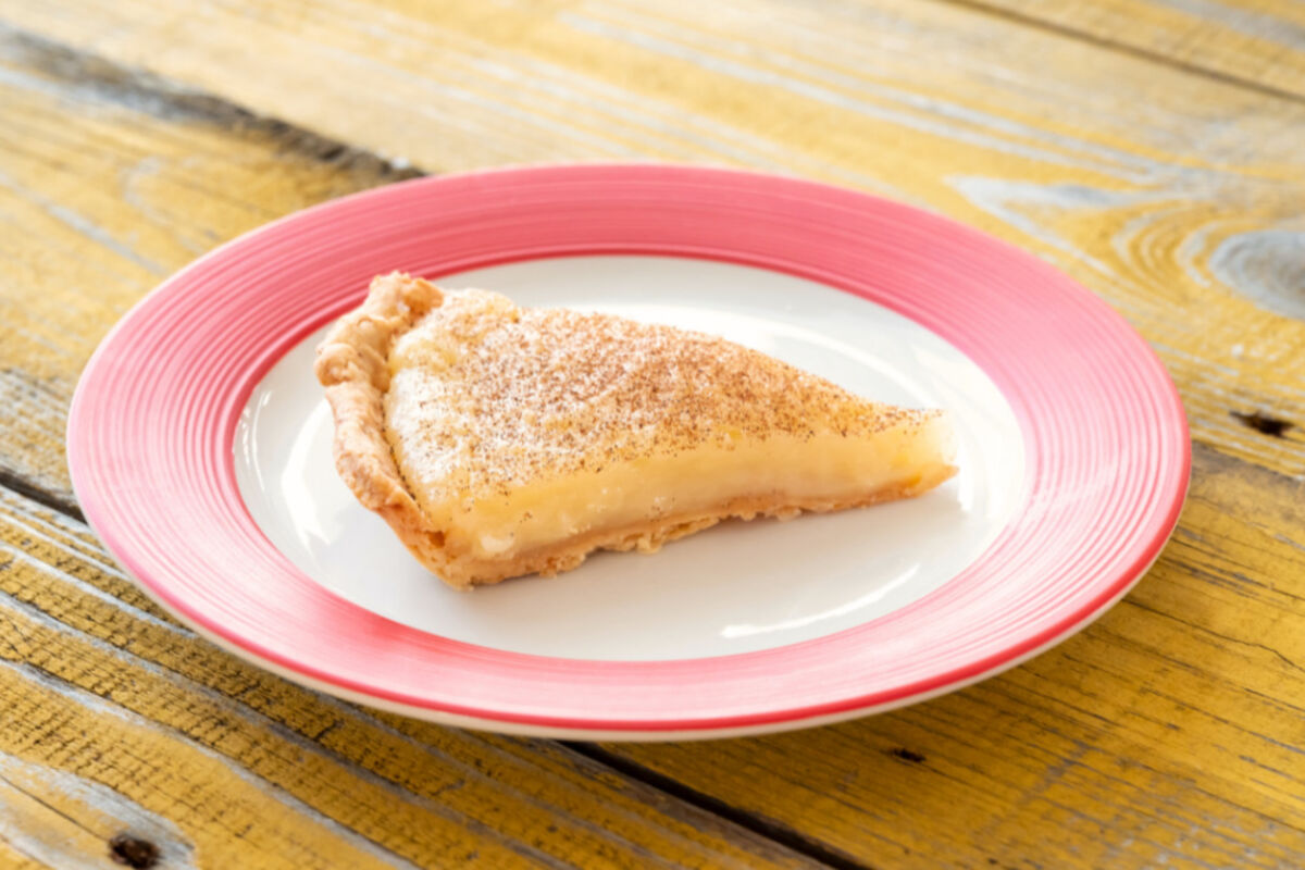 The official state pie of Indiana is sugar cream pie, sometimes called Hoosier Pie after the Hoosier State—a nickname that dates as far back as 1833. It comes from humble beginnings, perhaps brought by the Amish or Shakers as a kind of "desperation pie," or a dessert arising from a lack of access to ingredients. A simple household would likely have sugar, whipping cream or milk, flour, and butter to put into a pie crust. And in times of more prosperity, flavorings like nutmeg, cinnamon, and vanilla could be added. You don't even need eggs to make this recipe—but if you'd rather not do the work yourself, the most famous purveyor of sugar cream pie is Wick's Pies and Mrs. Wick's Pies and Restaurant in Winchester, Indiana.