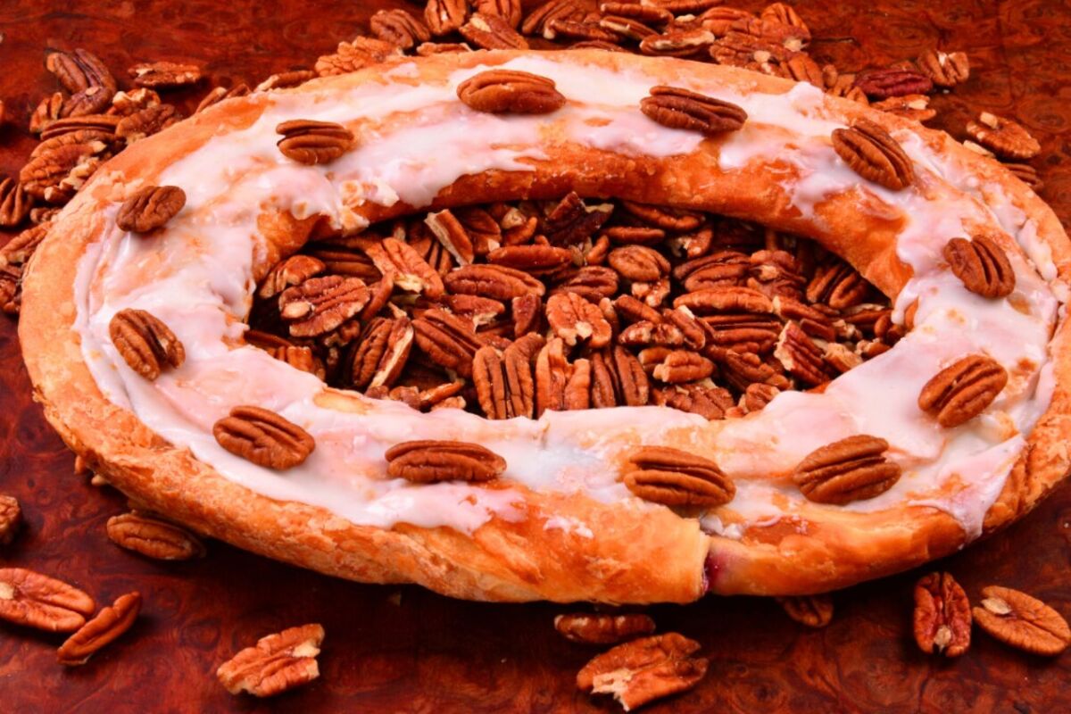 Kringles are a "Wisconsin thing"—and nearly exclusive to the state, which boasts the dessert as its official pastry. Ground zero for this ring-shaped, flaky confection is Racine, Wisconsin, where most of the state's Danish immigrants settled and opened businesses—not the least of which were bakeries. Although the round kringle with a hole in the center has evolved since arriving in the U.S. as pretzel-shaped, it still offers some old-world flair—taking three days to create all 32 layers of puff pastry in the traditional Danish way. Today, there are nut kringles and fruit kringles—both popular at breakfast with a cup of coffee—but part of its Americanization is also filling it with whatever your heart desires, including favorites like chocolate and caramel.