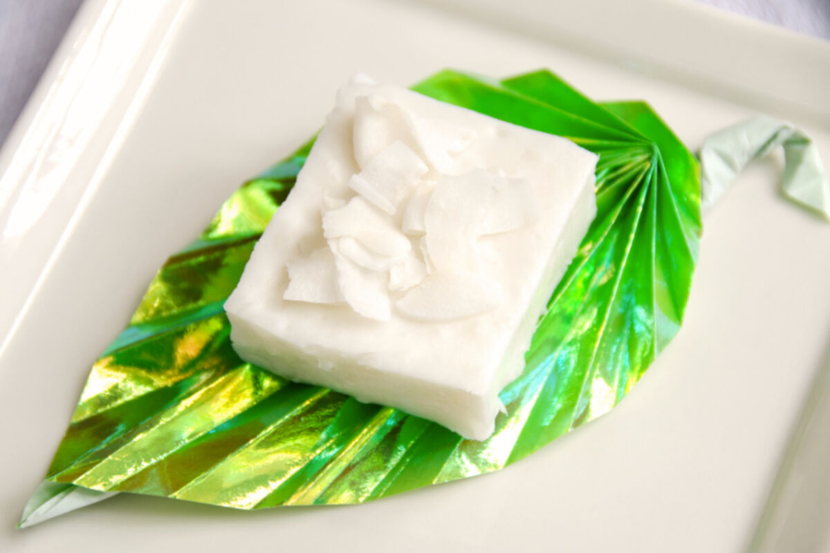 In Hawai'i, a coconut milk-based pudding called haupia is both a signature dessert on its own, as well as a topping on other desserts, like chocolate pie. There's even a fried version that's available at McDonald's—but only in Hawai'i. Thanks to the addition of a thickening agent— known as arrowroot starch, aka "pia," but also cornstarch—it has a gelatinous texture that allows it to be sliced into small squares or rectangles and passed around as a hand-held snack at luaus and other celebrations.