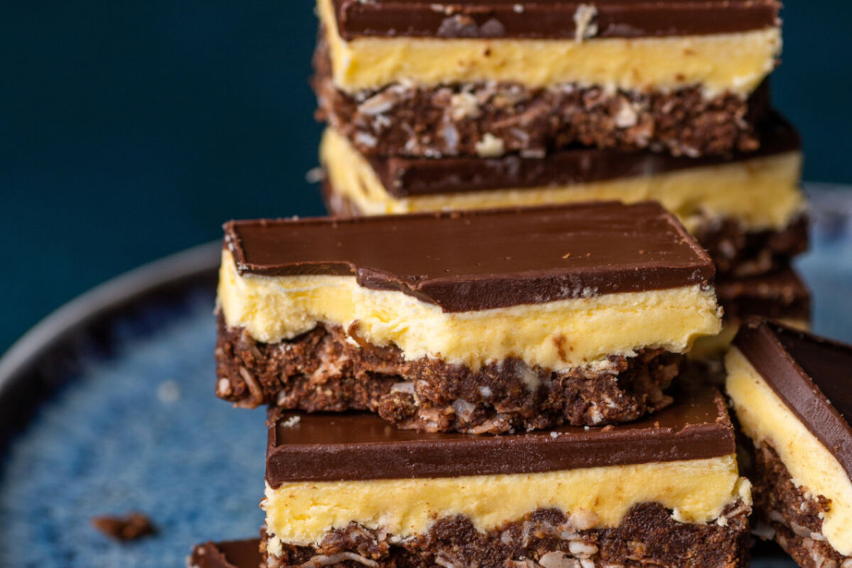 When in Washington State, be sure to track down some Nanaimo bars—a no-bake dessert first documented in the 1950s that made its way south from the city of Nanaimo on Vancouver Island in British Columbia, Canada. These layered bars have reached legendary status in Washington, according to the Seattle Times—generally consisting of a graham crust, a custard middle filling, and a chocolate top.