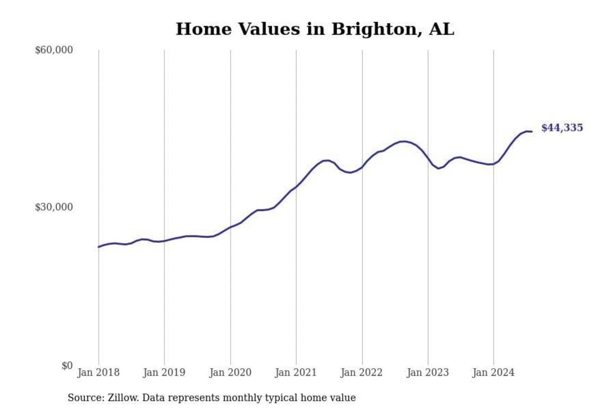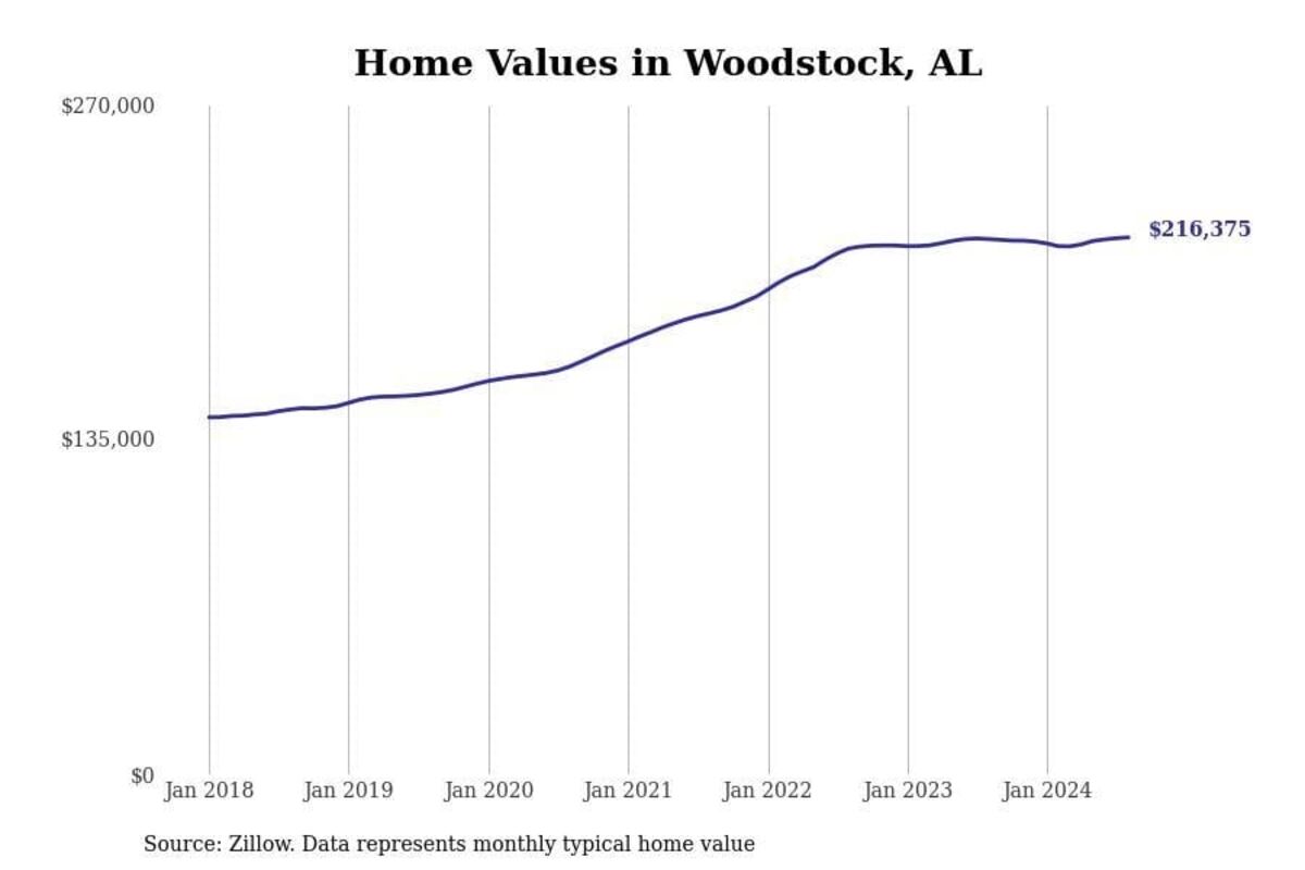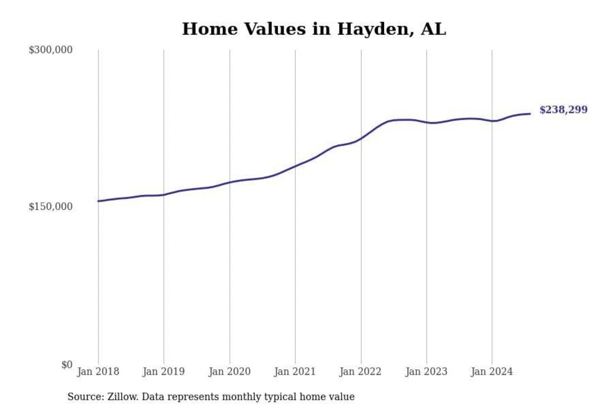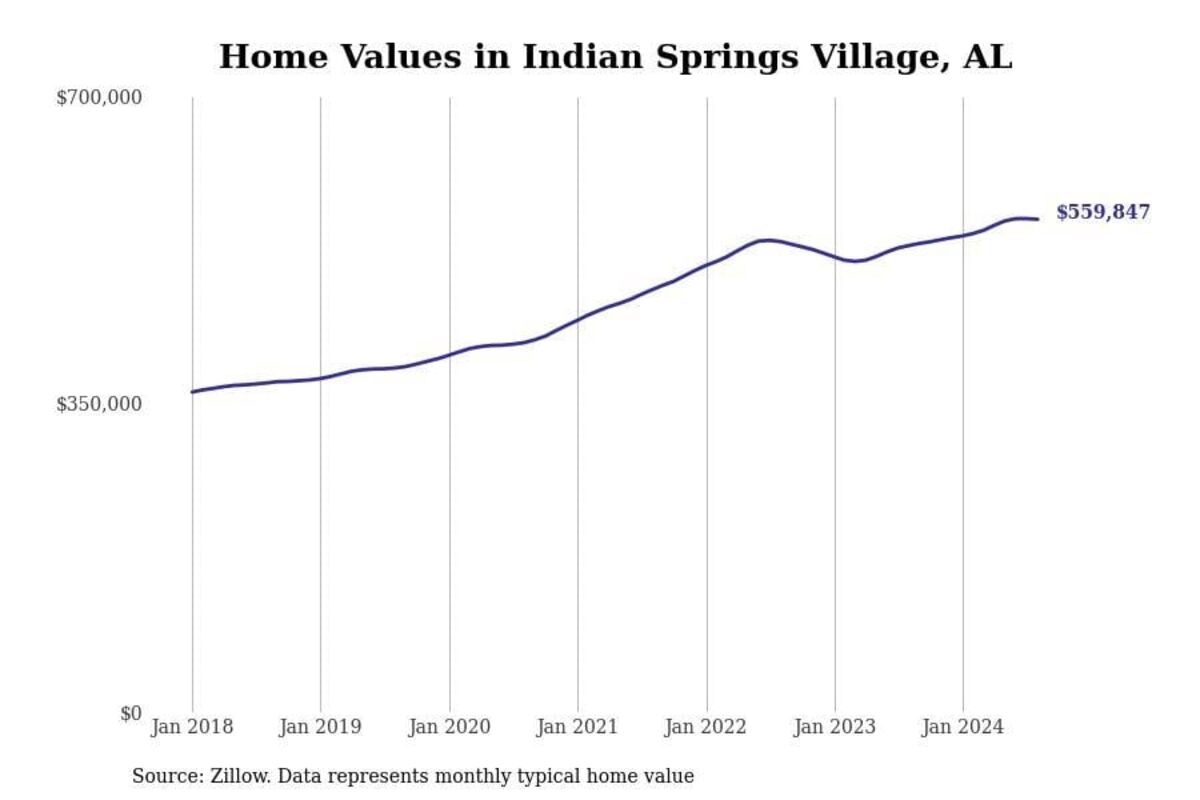Stacker compiled a list of cities with the most expensive homes in the Birmingham-Hoover, AL metro area using data from Zillow. Charts show the monthly typical home value since January 2018.