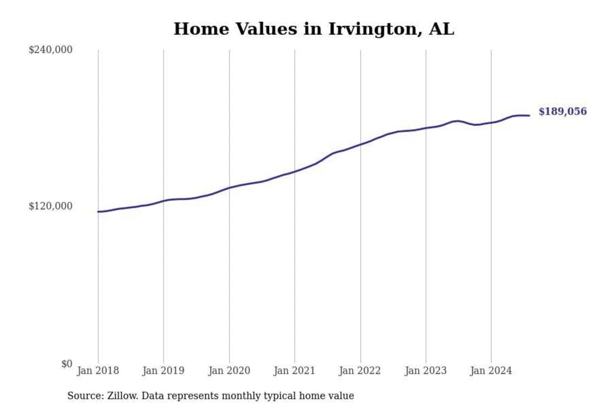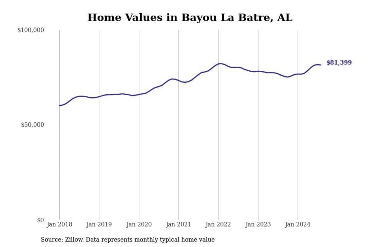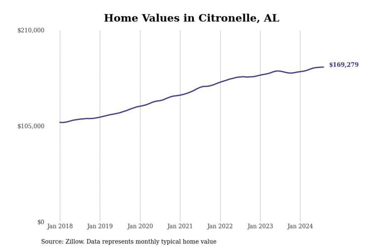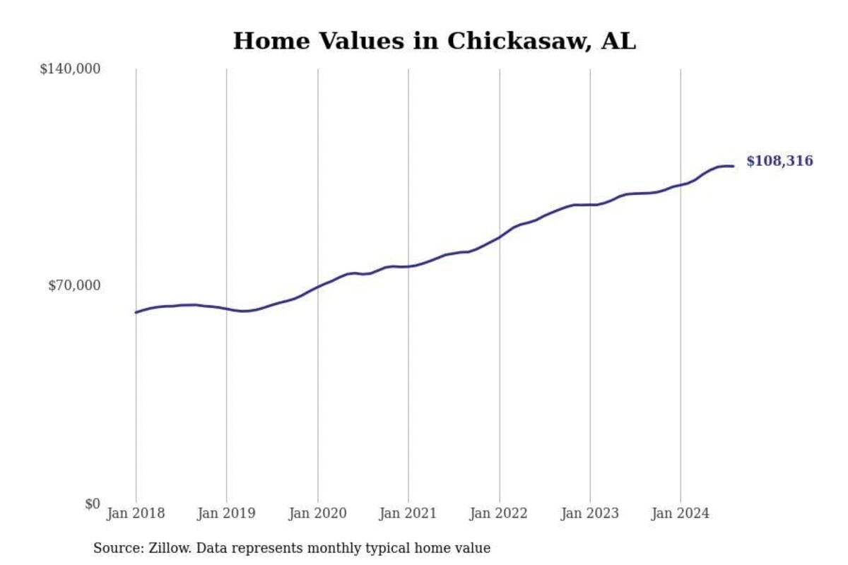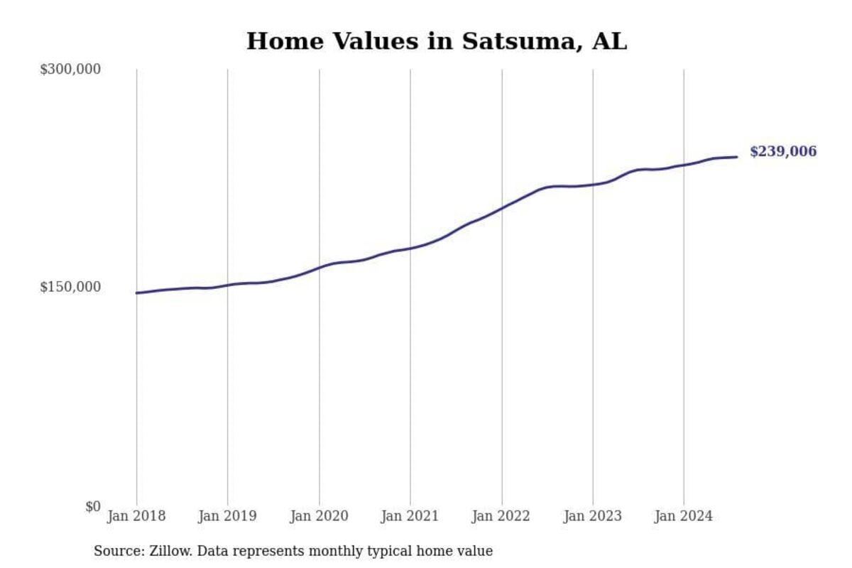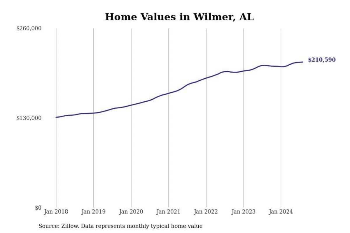 Stacker compiled a list of cities with the most expensive homes in the Mobile, AL metro area using data from Zillow. Charts show the monthly typical home value since January 2018.