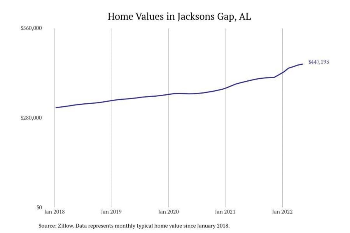 Stacker compiled a list of cities with the most expensive homes in Alabama using data from Zillow. Cities are ranked by the Zillow Home Values Index for all homes as of August 2024. The charts in this story were created automatically using Matplotlib.