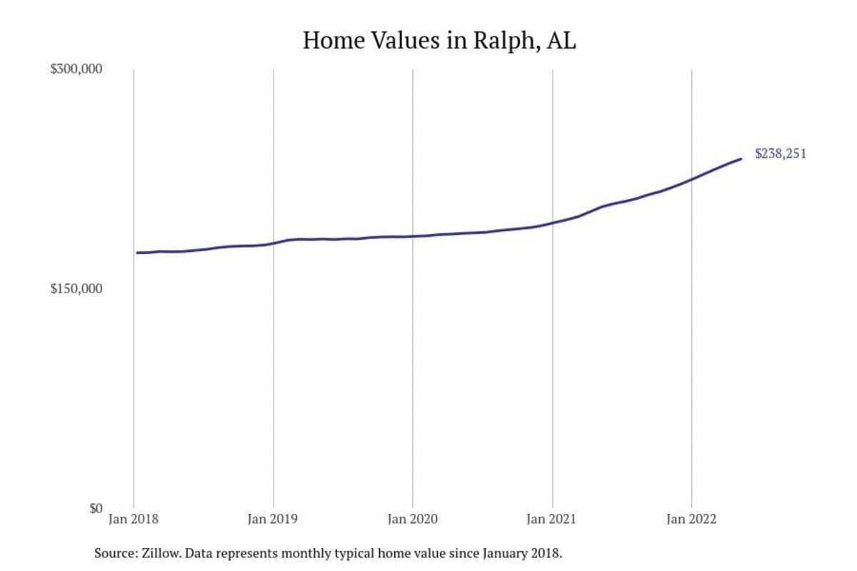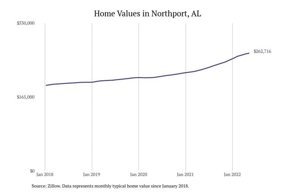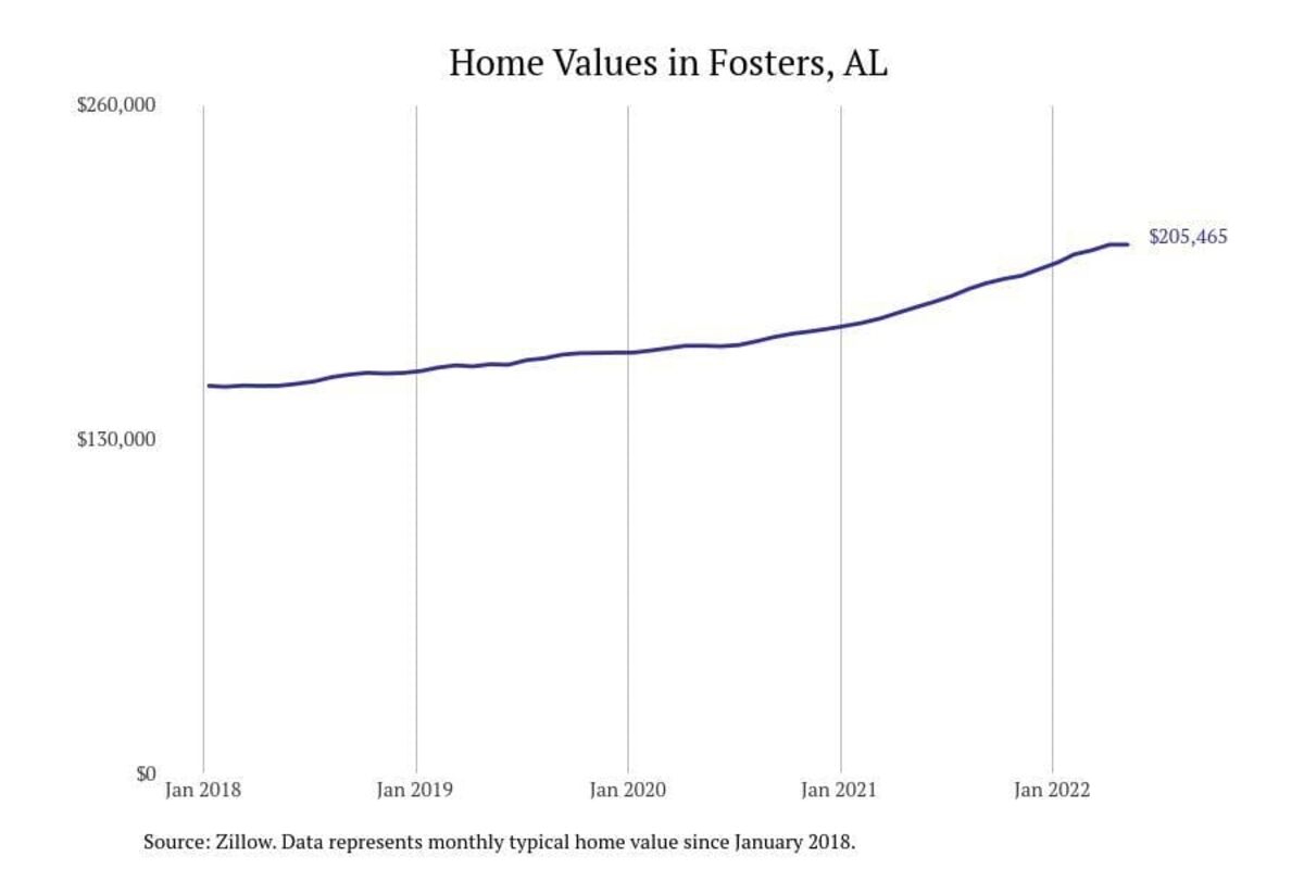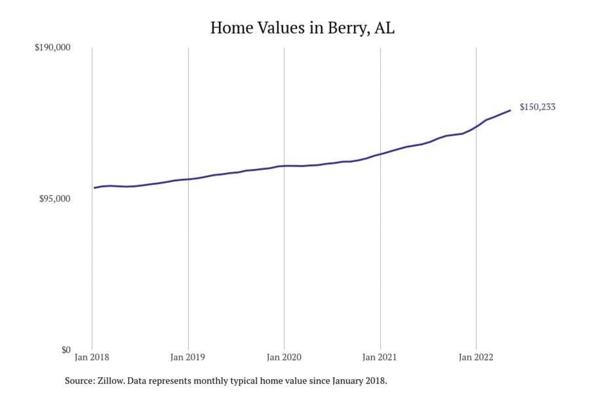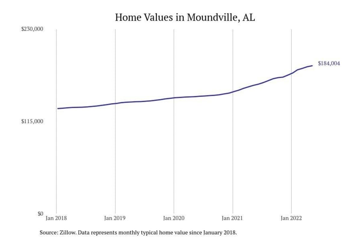 Stacker compiled a list of cities with the most expensive homes in the Tuscaloosa metro area using data from Zillow. Charts show the monthly typical home value since January 2018. All 19 cities and towns with data available were included in the list.
