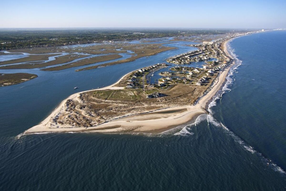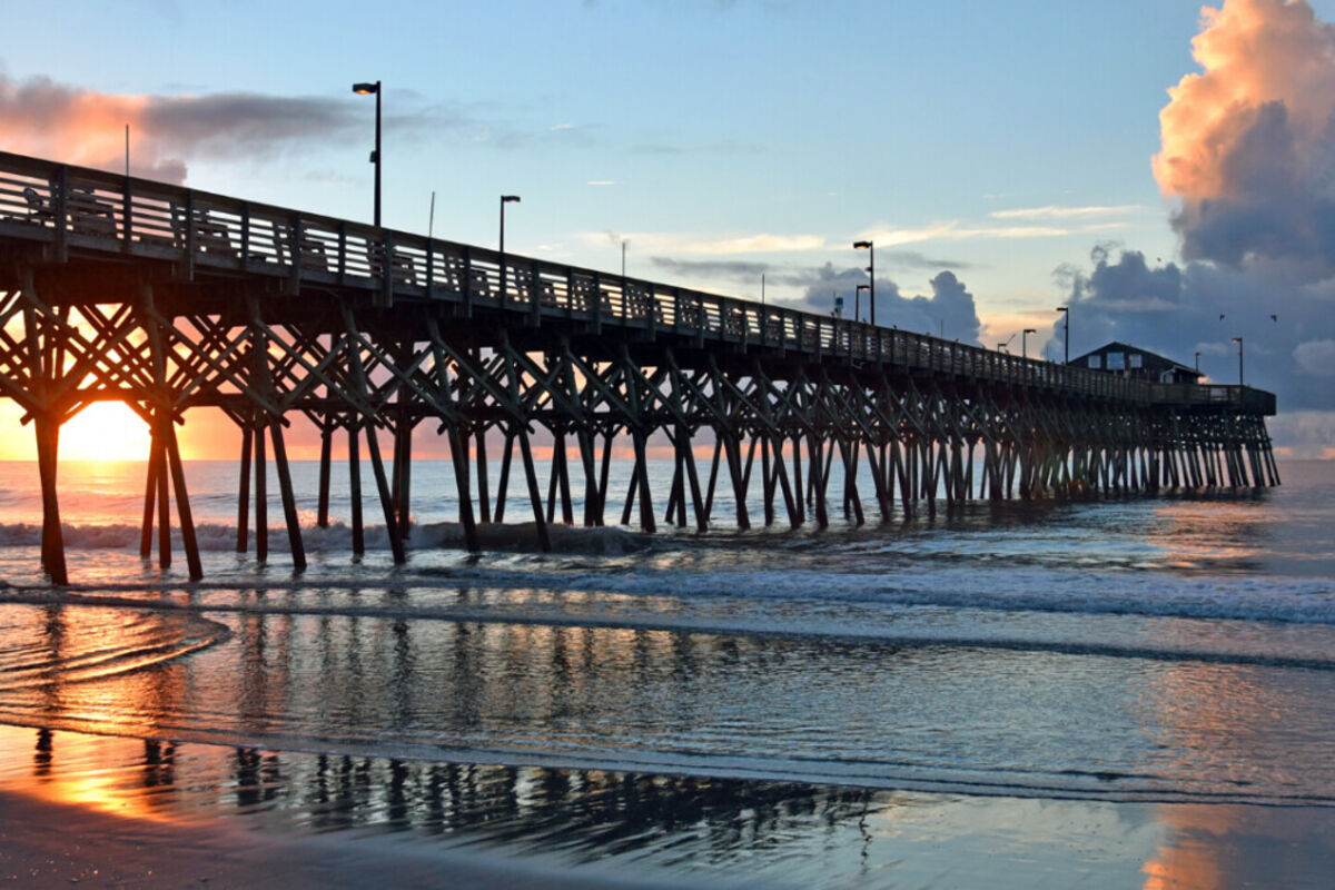 A few miles southwest of Myrtle Beach is Garden City—popular for boating, crabbing, and fishing, including seining. It's built on a peninsula between tidal marshes and the Atlantic Ocean and has about 5 miles of beaches.