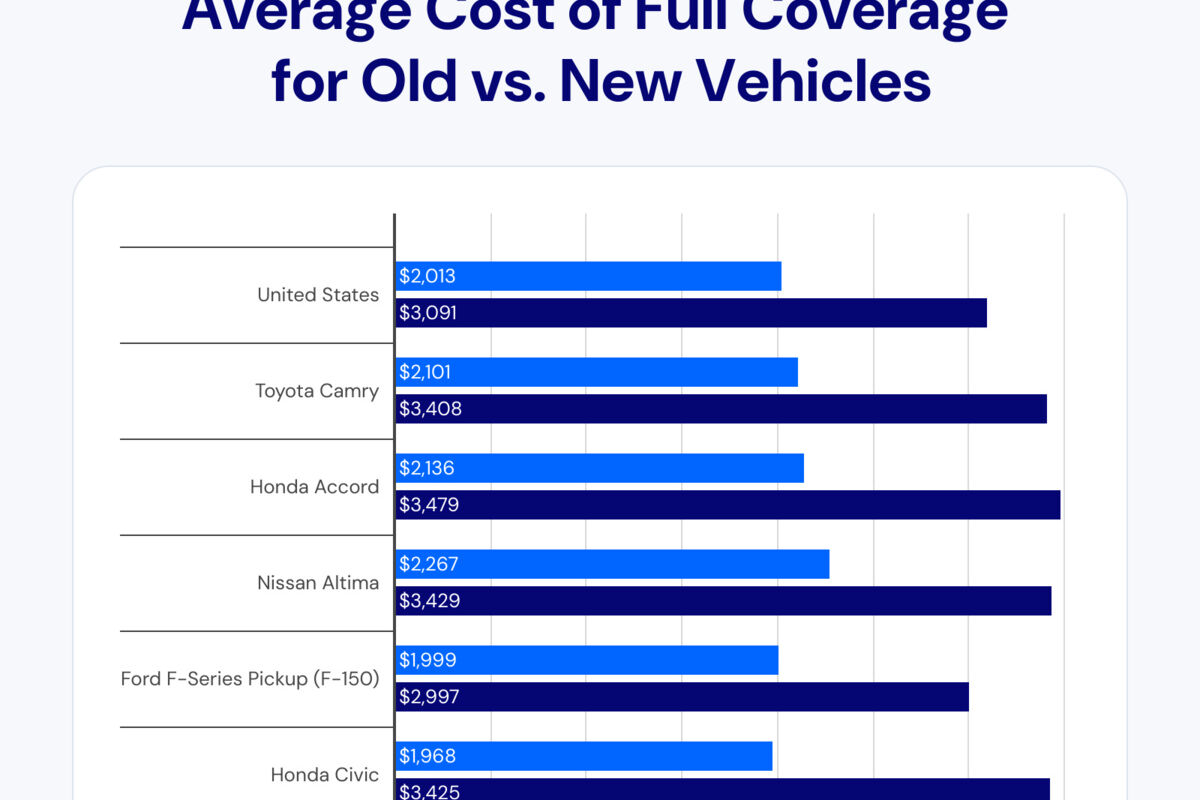 Though most insurers offer new vehicle discounts because the cars are more reliable and safer in accidents, insurance is cheaper for older vehicles. Full coverage for a 2011–2012 model year Honda Civic averages $1,968 annually, but insuring a 2023–2024 model costs 74% more, at $3,425 annually.