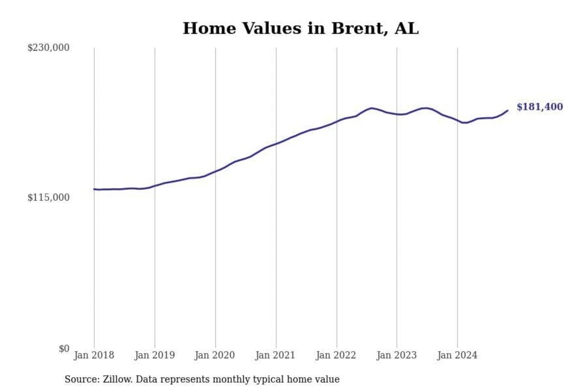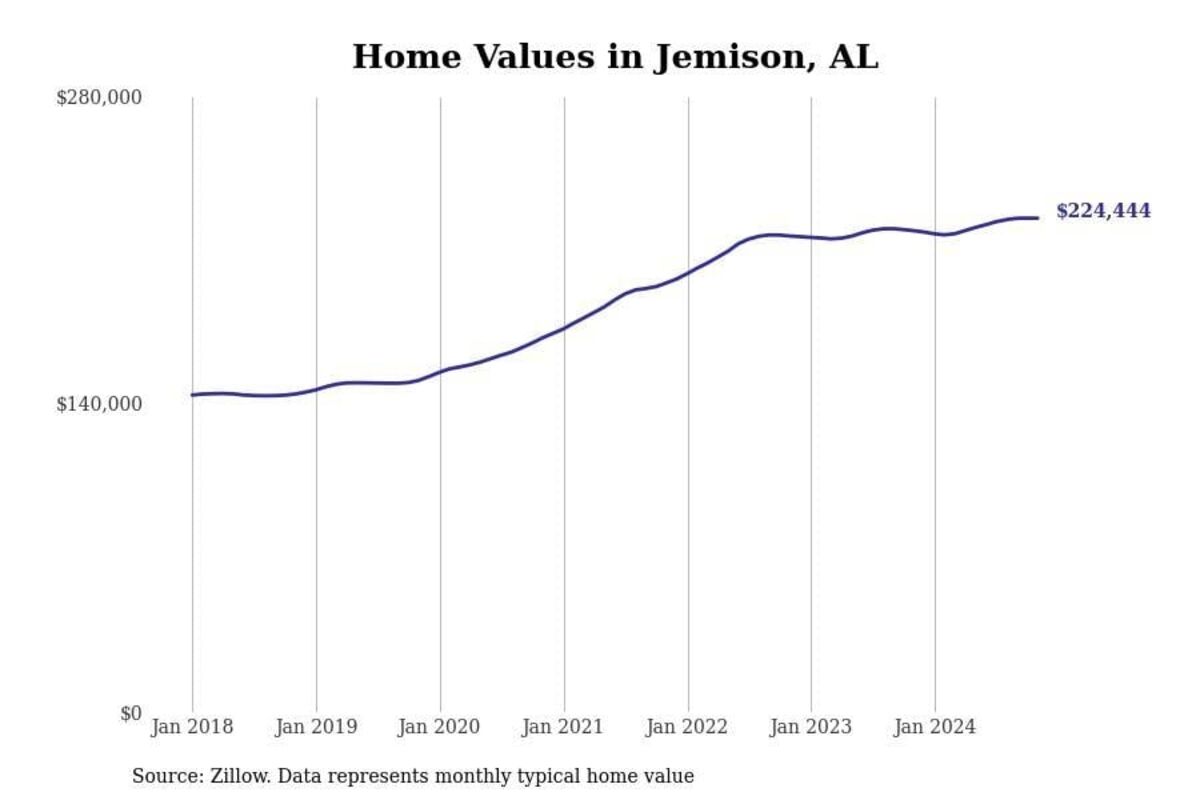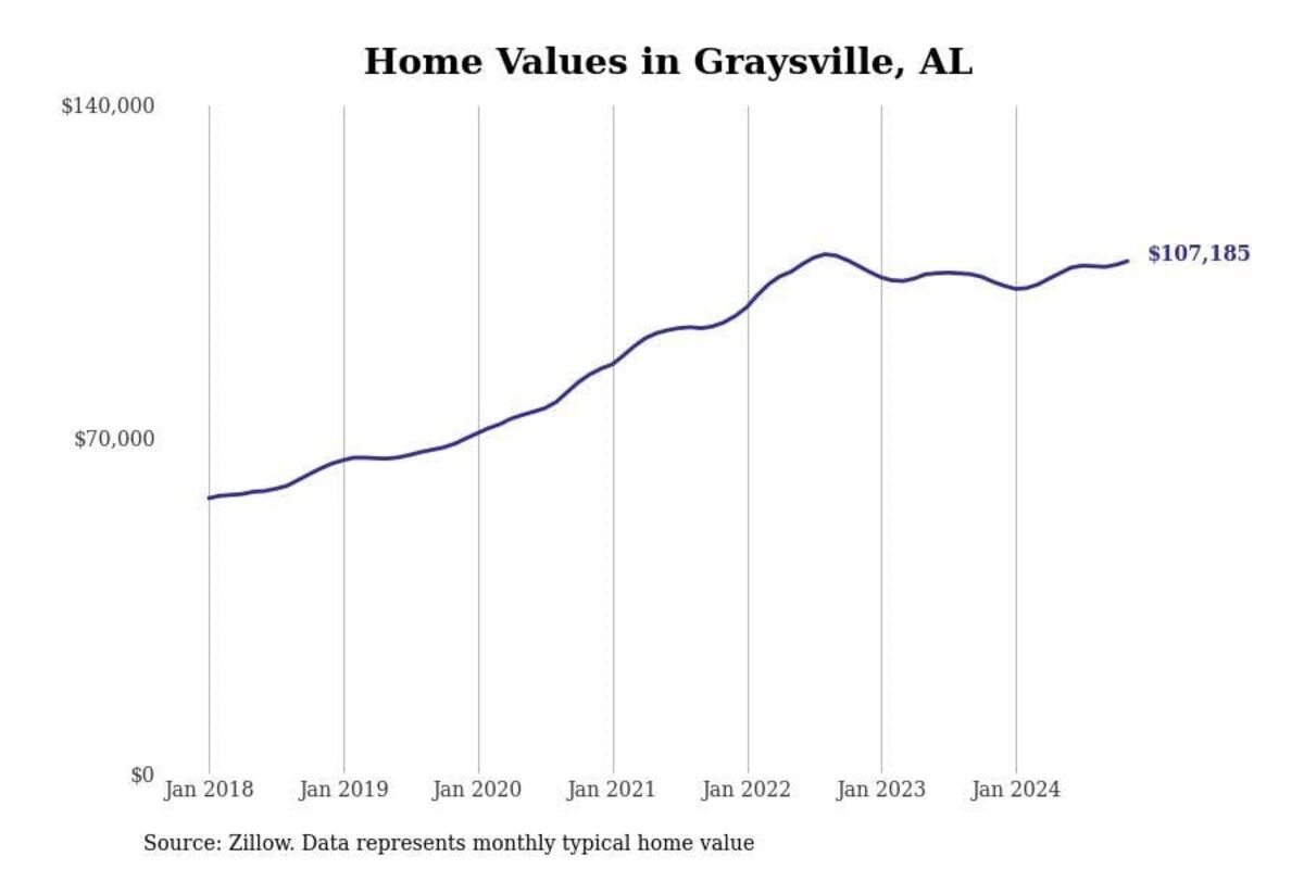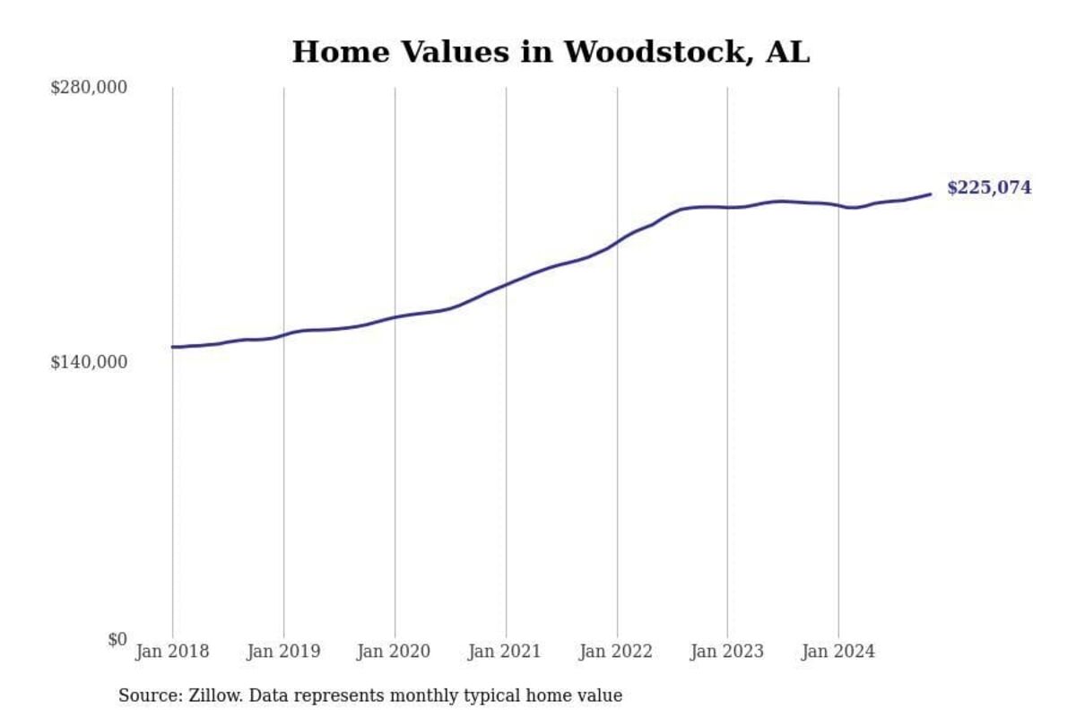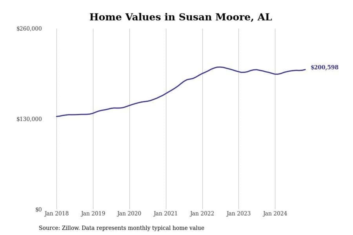 Stacker compiled a list of cities with the most expensive homes in the Birmingham-Hoover, AL metro area using data from Zillow. Charts show the monthly typical home value since January 2018.