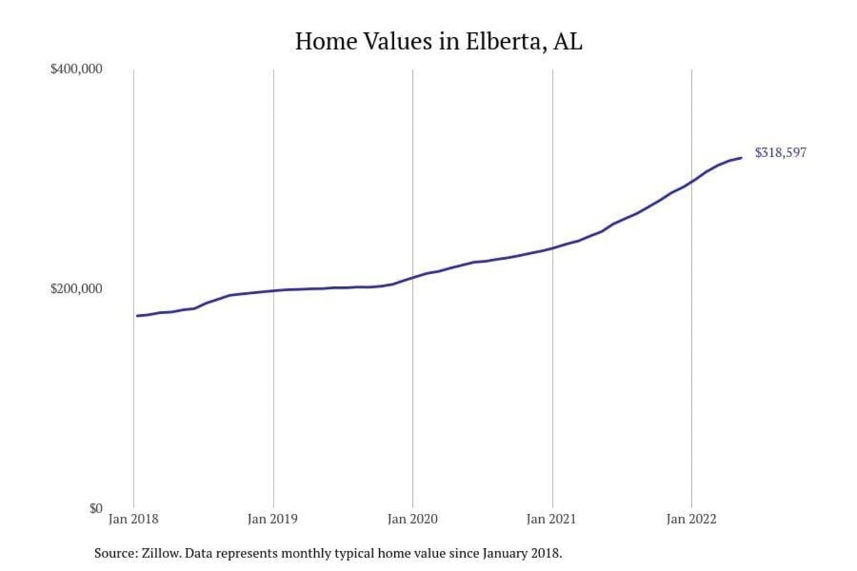 Stacker compiled a list of cities with the most expensive homes in Alabama using data from Zillow. Cities are ranked by the Zillow Home Values Index for all homes as of December 2024. The charts in this story were created automatically using Matplotlib.