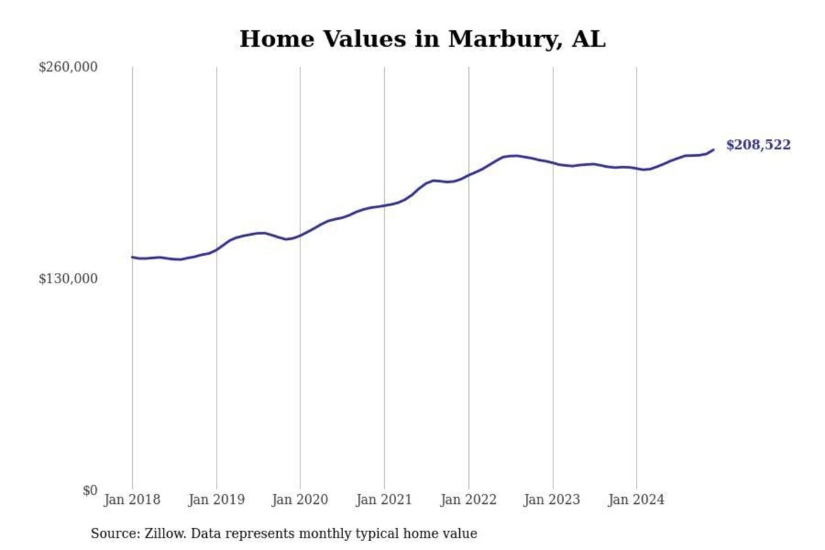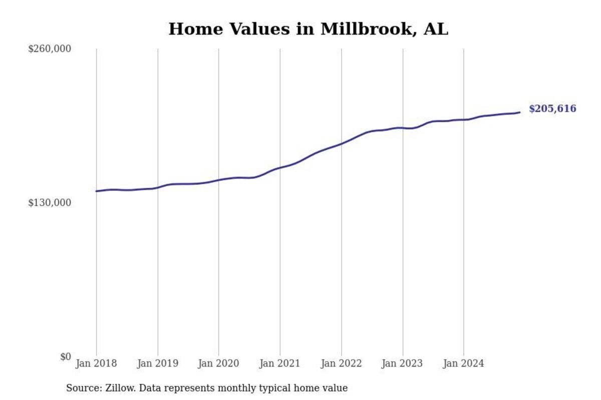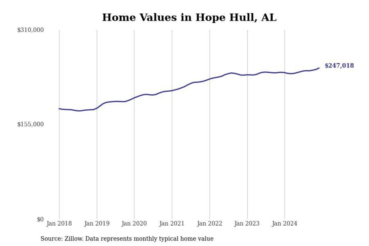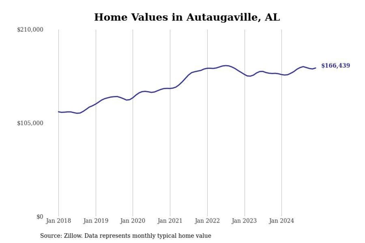 Stacker compiled a list of cities with the most expensive homes in the Montgomery, AL metro area using data from Zillow. Charts show the monthly typical home value since January 2018.