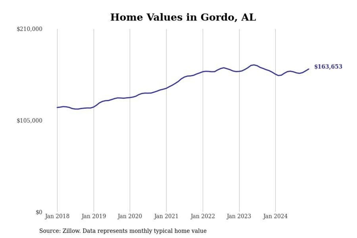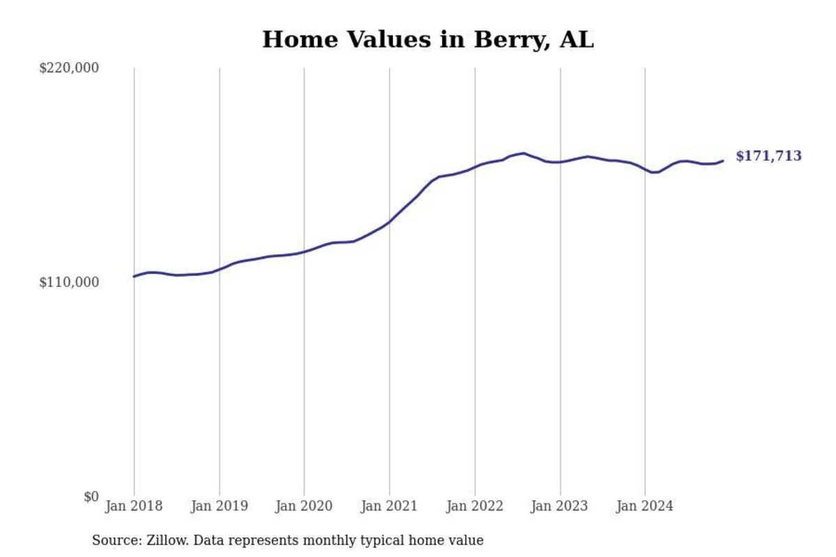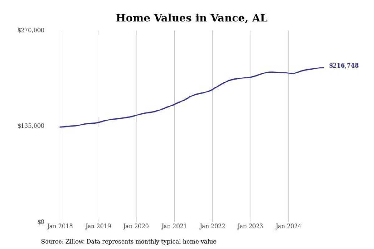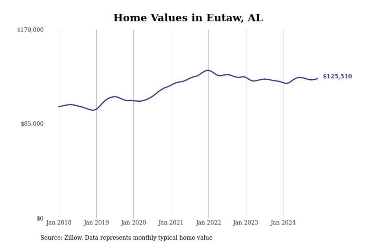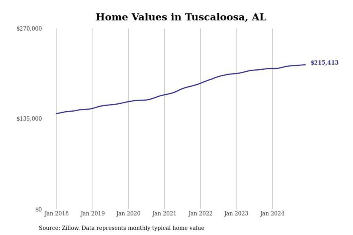 Stacker compiled a list of cities with the most expensive homes in the Tuscaloosa, AL metro area using data from Zillow. Charts show the monthly typical home value since January 2018.