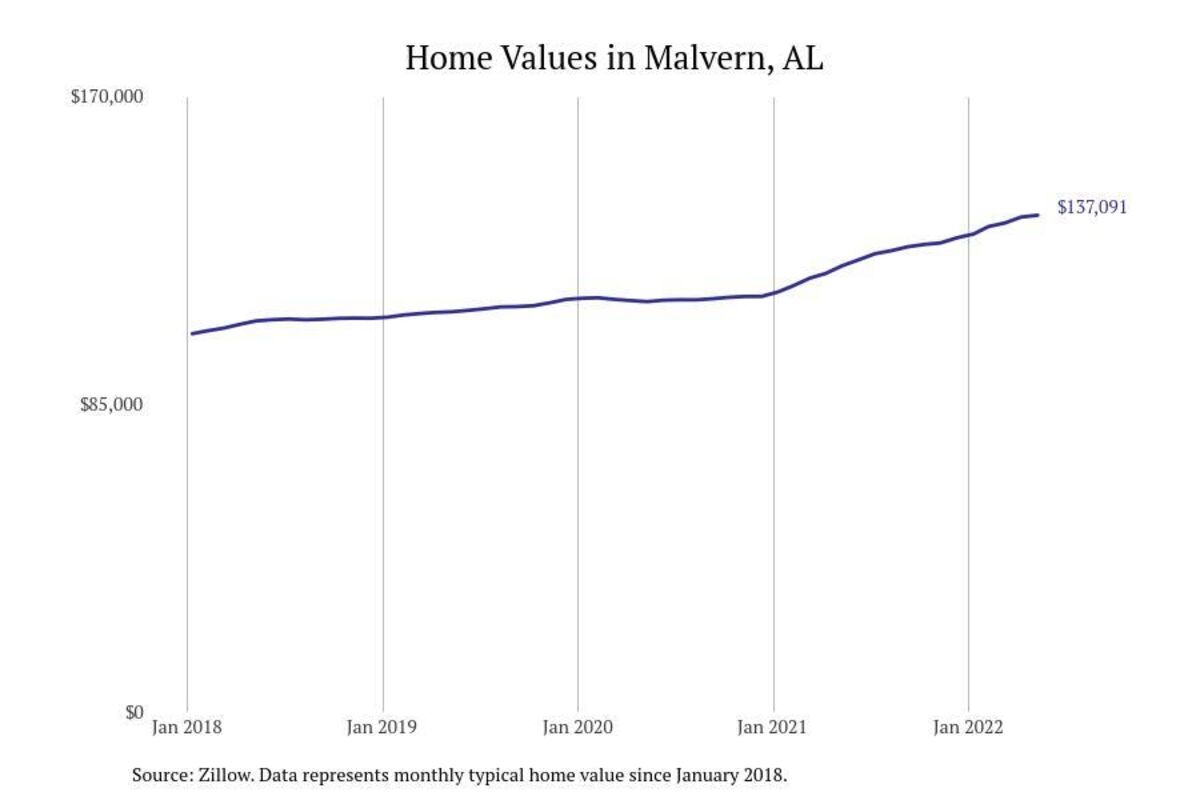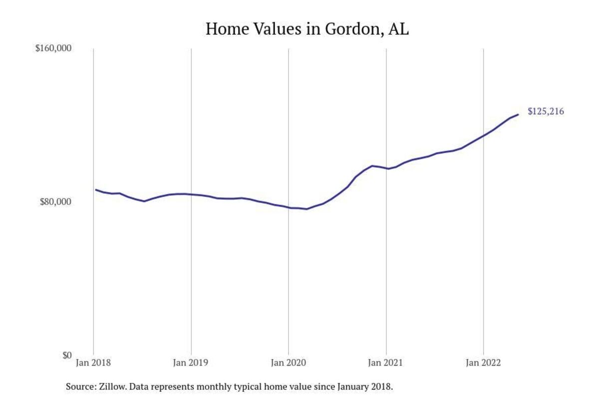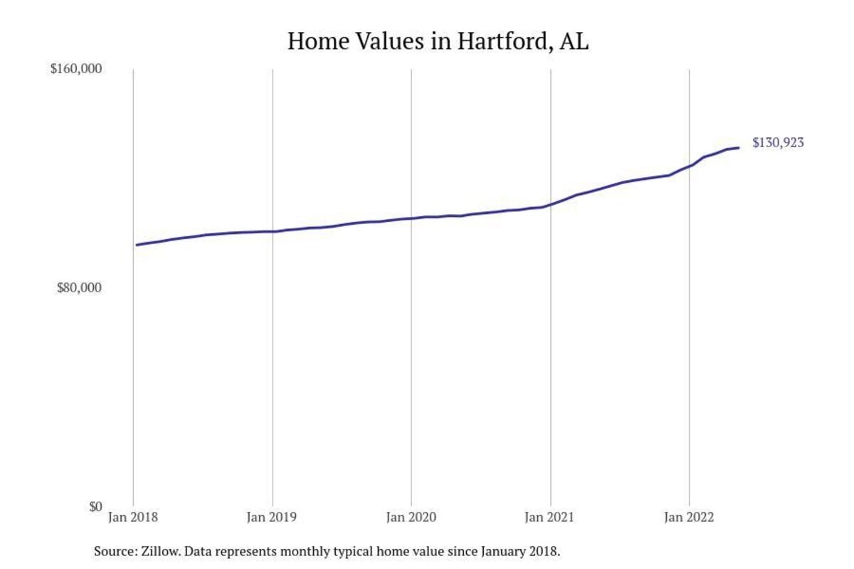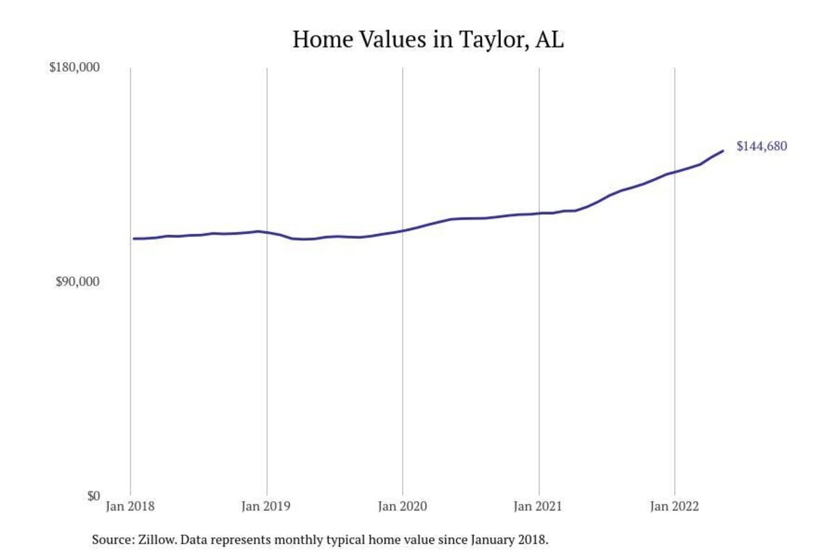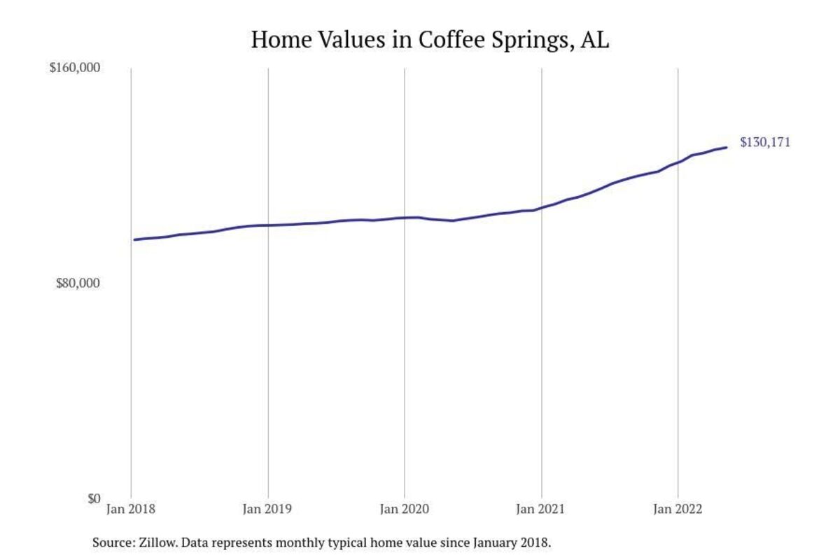 Stacker compiled a list of cities with the most expensive homes in the Dothan metro area using data from Zillow. Charts show the monthly typical home value since January 2018. All 26 cities and towns with data available were included in the list.