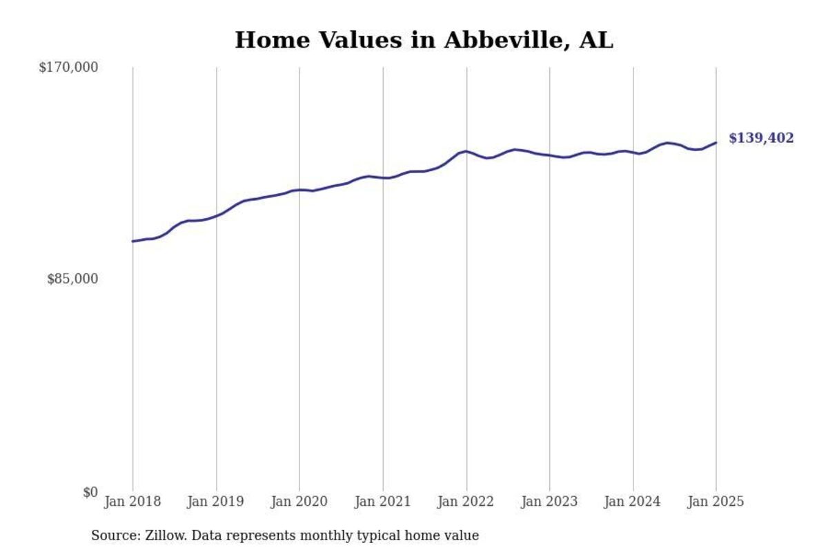 Stacker compiled a list of cities with the most expensive homes in the Dothan, AL metro area using data from Zillow. Charts show the monthly typical home value since January 2018.