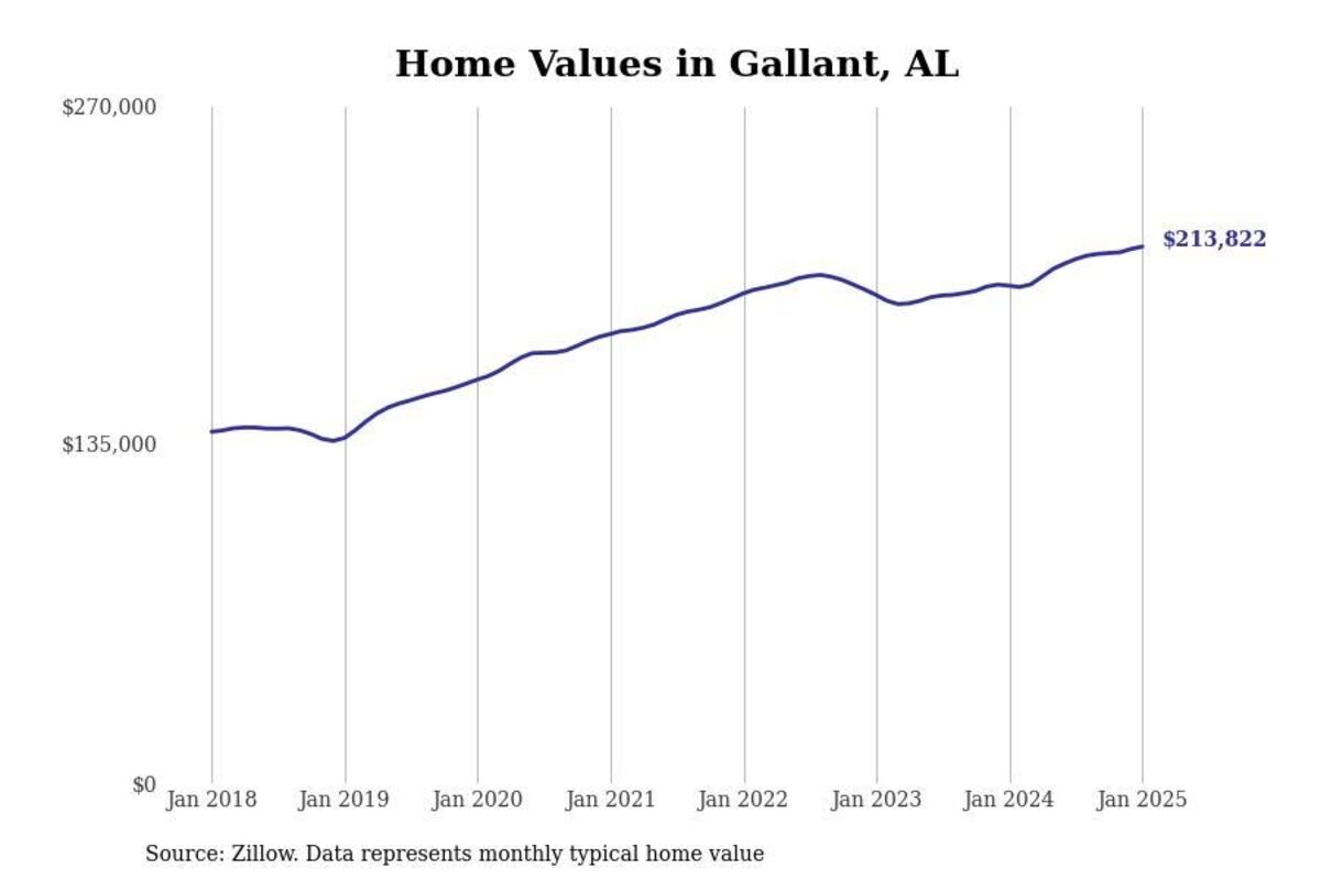 Stacker compiled a list of cities with the most expensive homes in the Gadsden, AL metro area using data from Zillow. Charts show the monthly typical home value since January 2018.