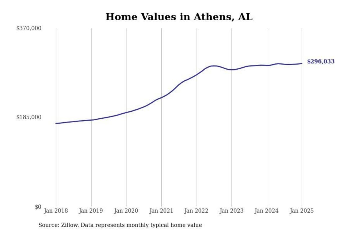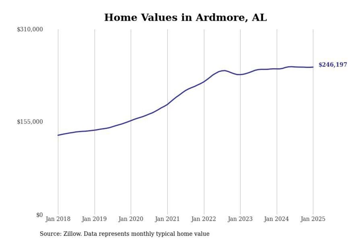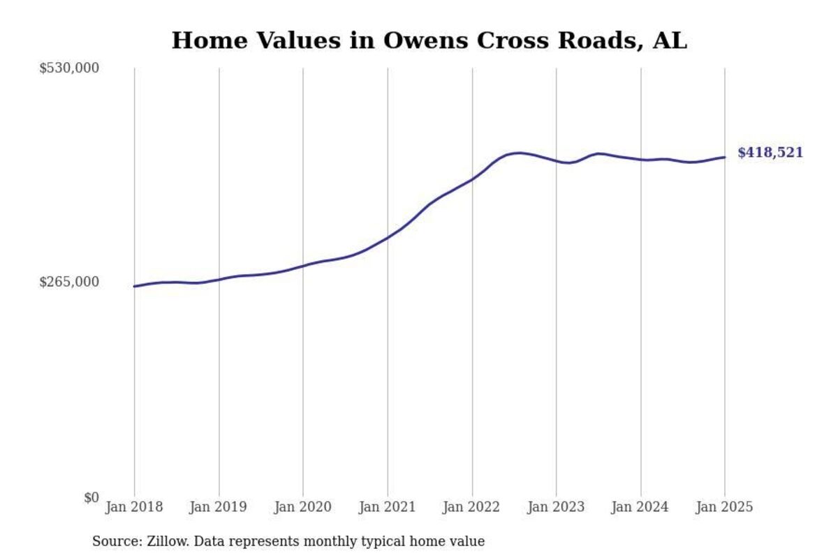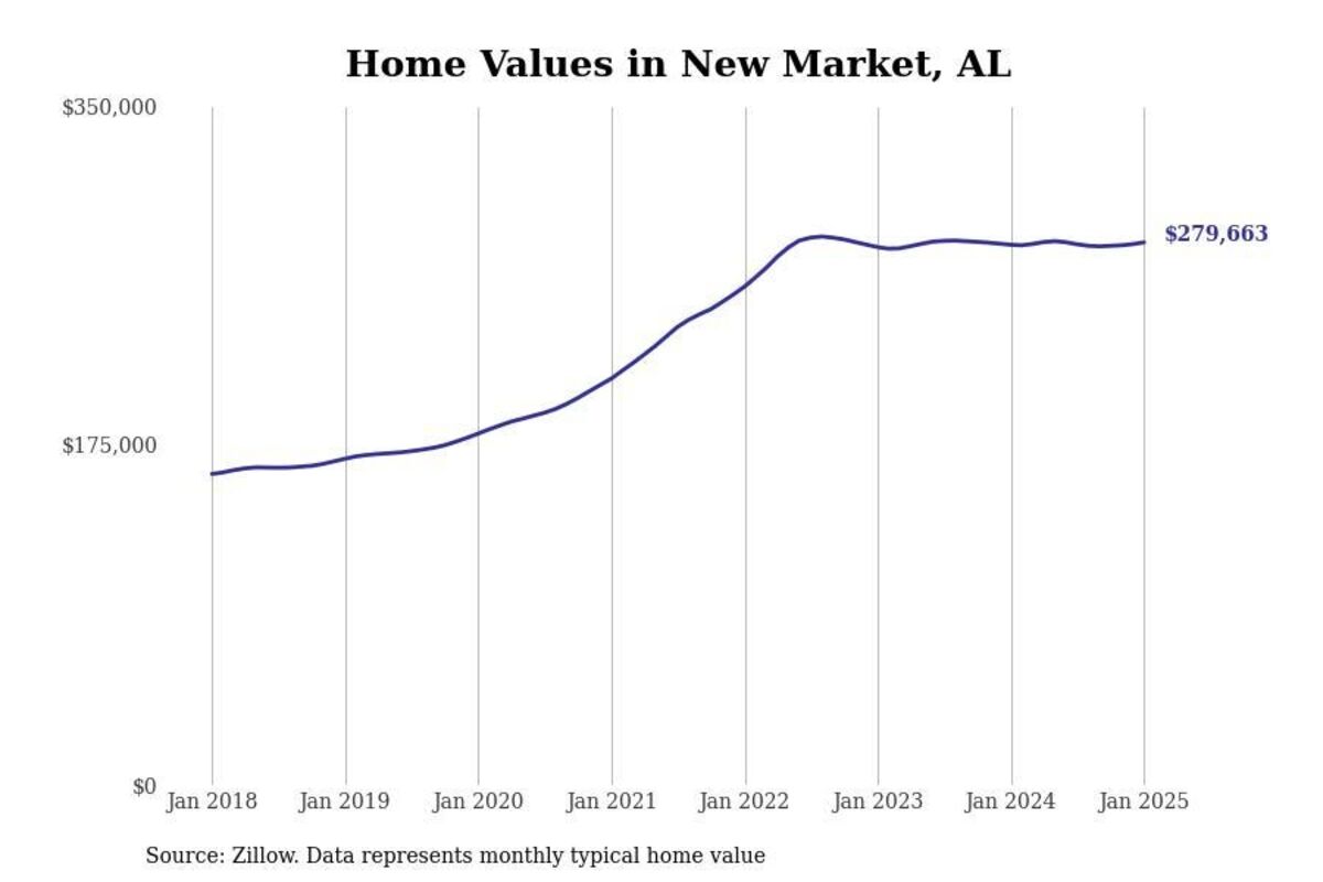 Stacker compiled a list of cities with the most expensive homes in the Huntsville, AL metro area using data from Zillow. Charts show the monthly typical home value since January 2018.