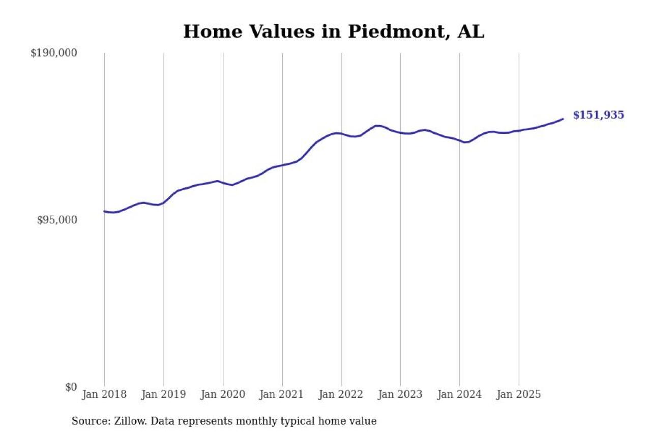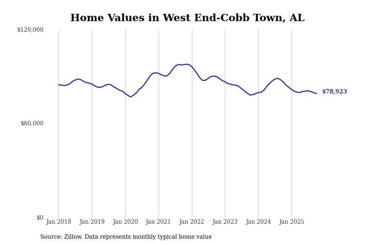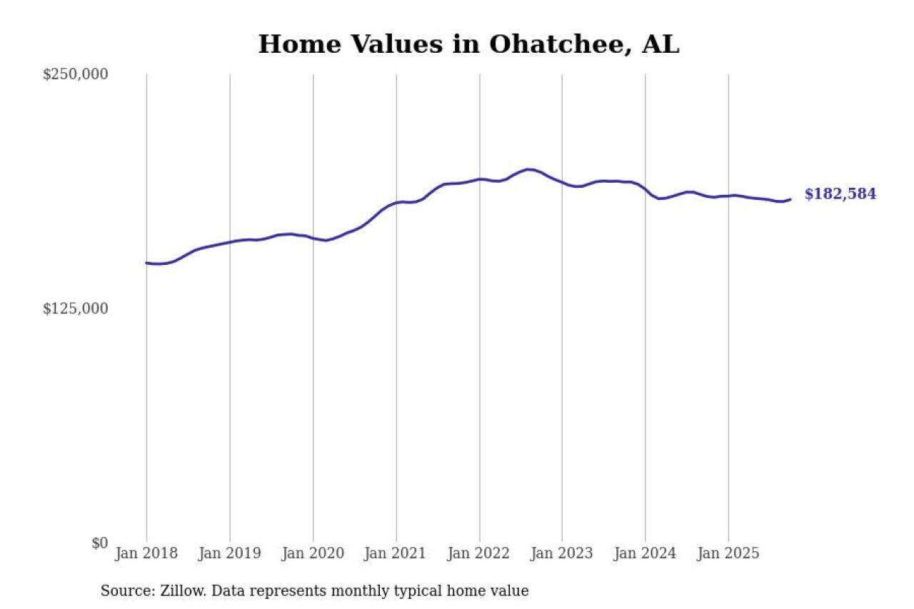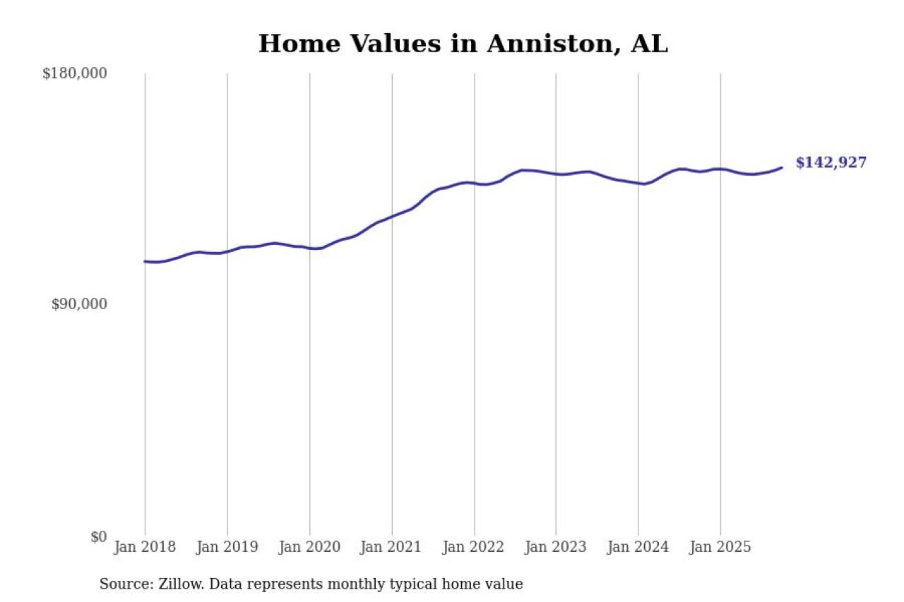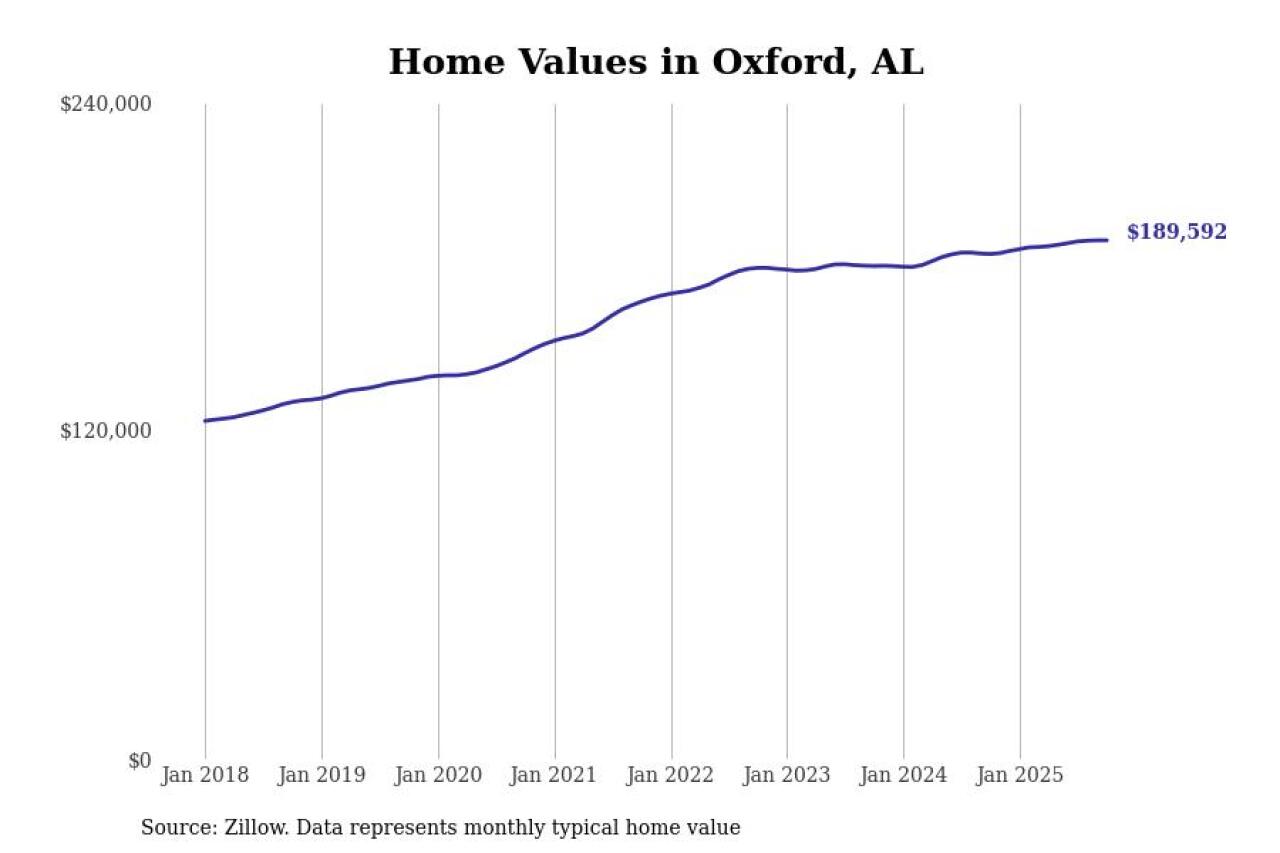 Stacker compiled a list of cities with the most expensive homes in the Anniston-Oxford, AL metro area using data from Zillow. Charts show the monthly typical home value since January 2018.