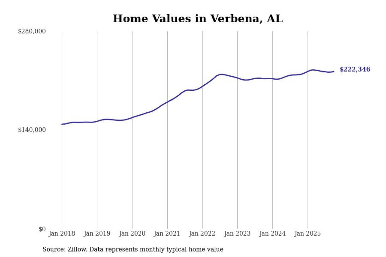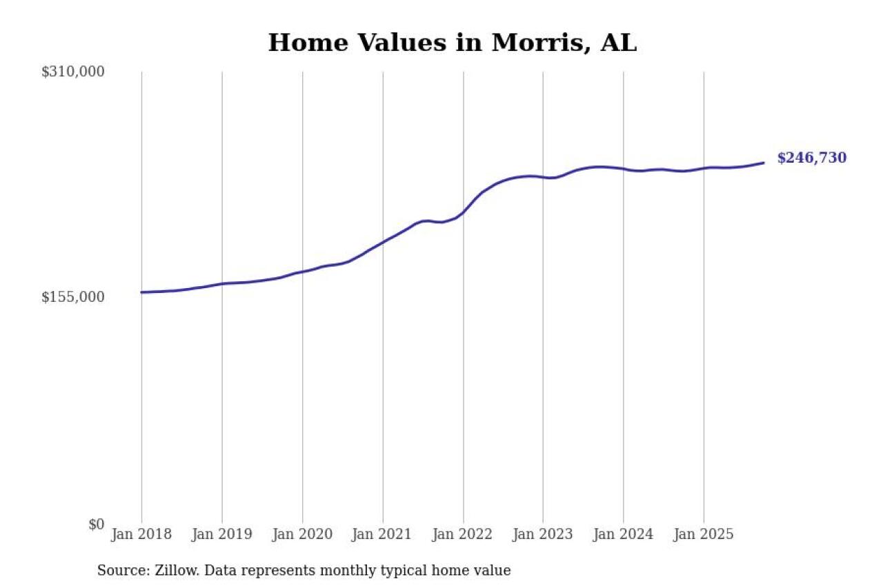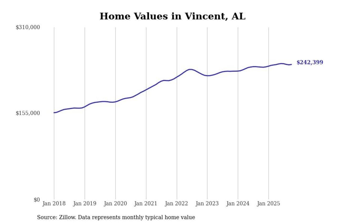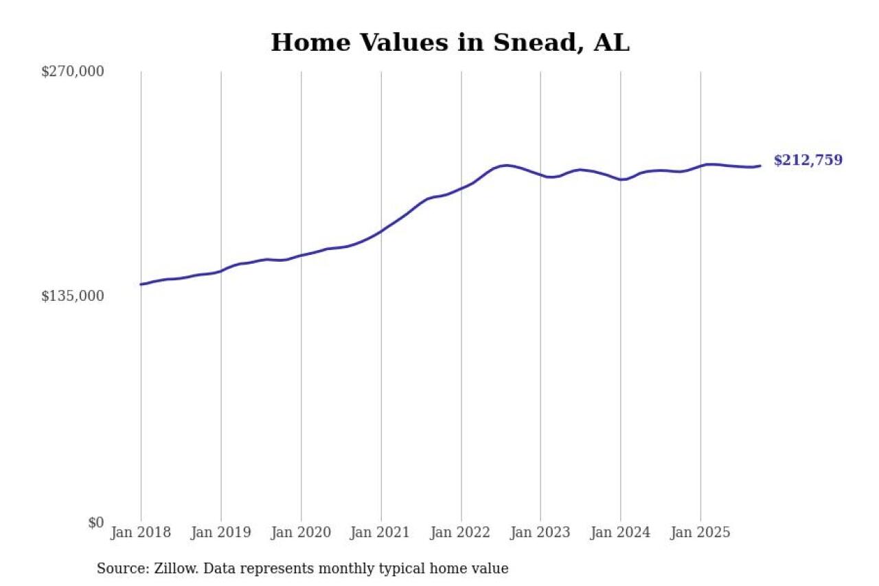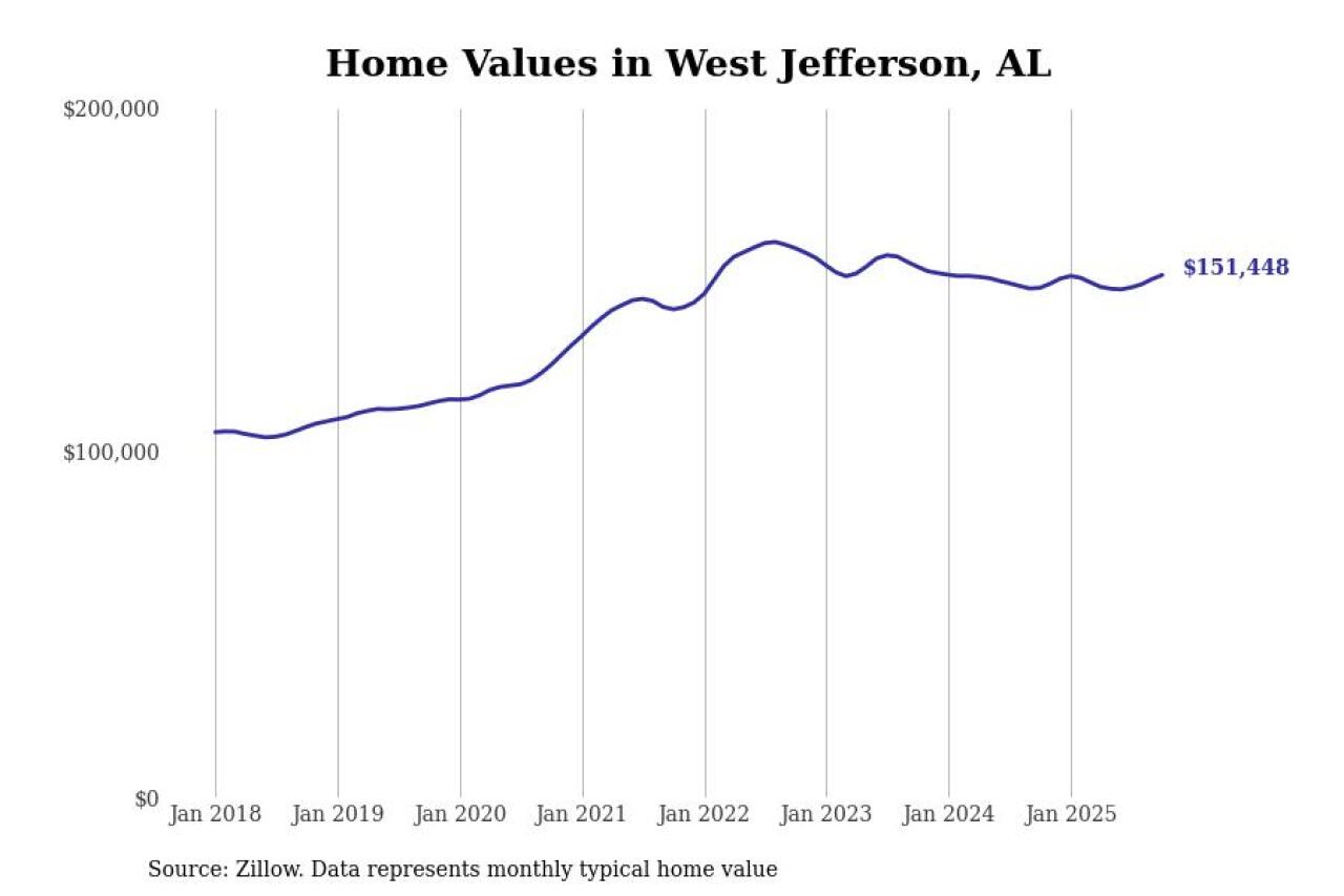 Stacker compiled a list of cities with the most expensive homes in the Birmingham-Hoover, AL metro area using data from Zillow. Charts show the monthly typical home value since January 2018.