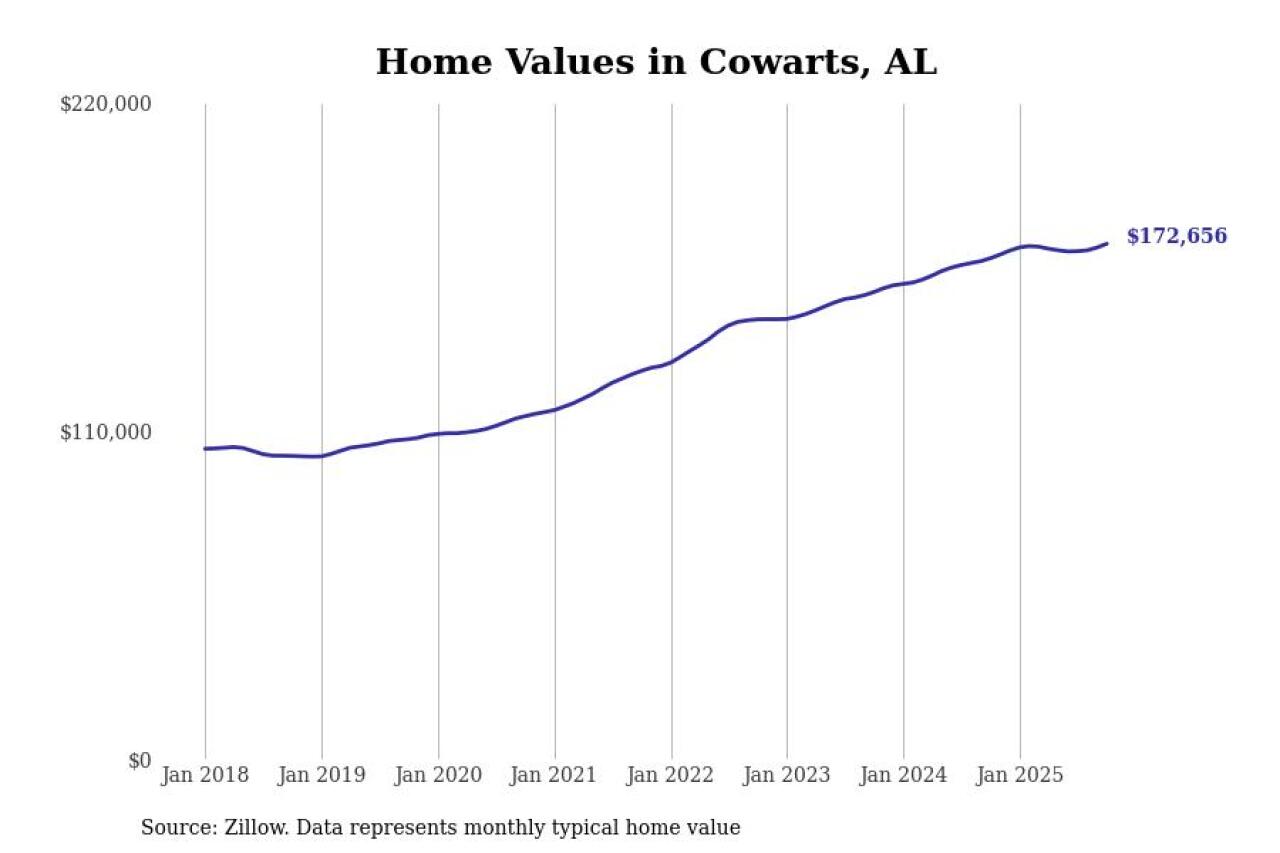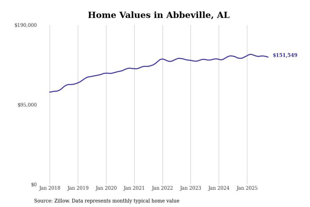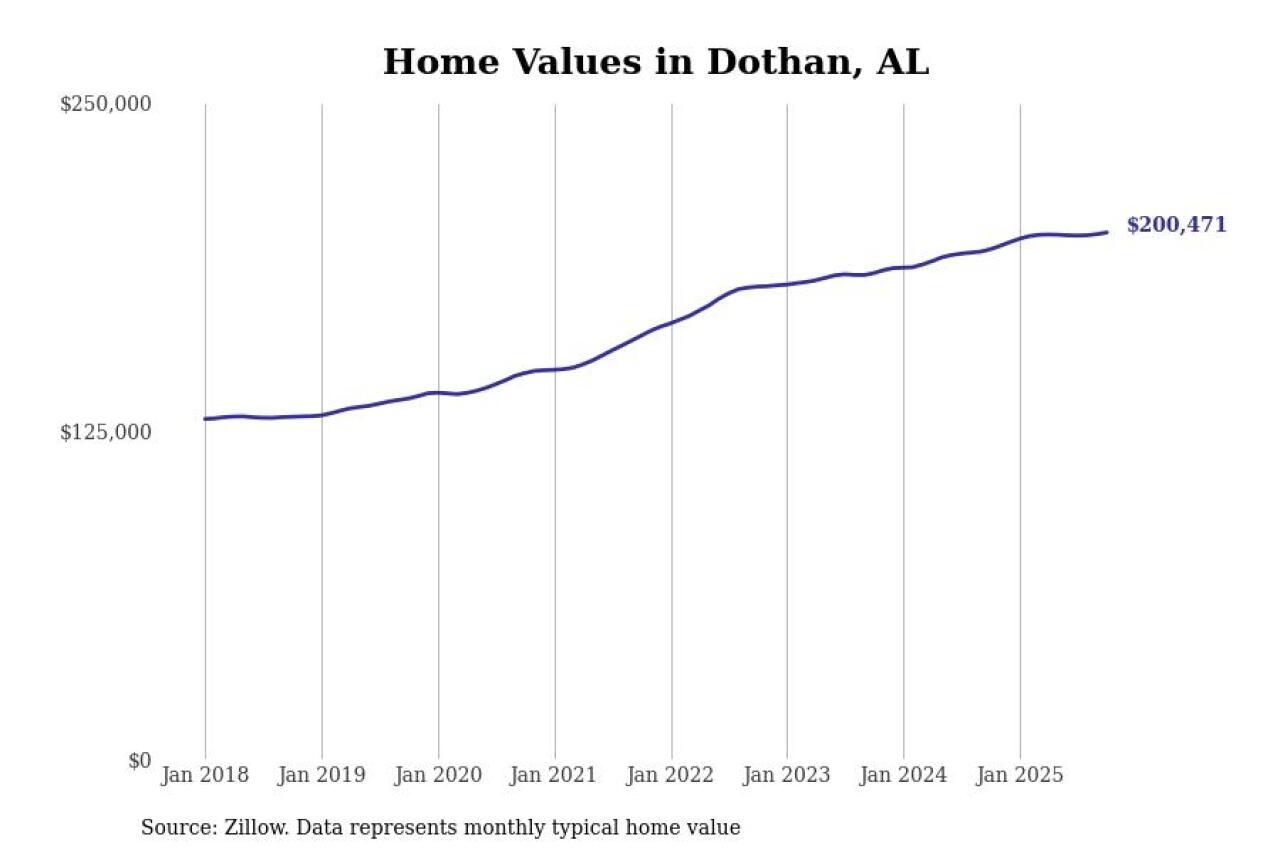 Stacker compiled a list of cities with the most expensive homes in the Dothan, AL metro area using data from Zillow. Charts show the monthly typical home value since January 2018.