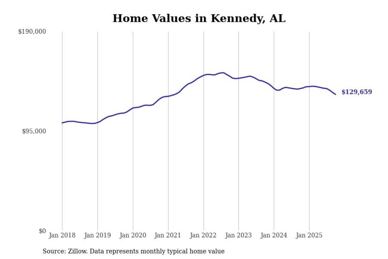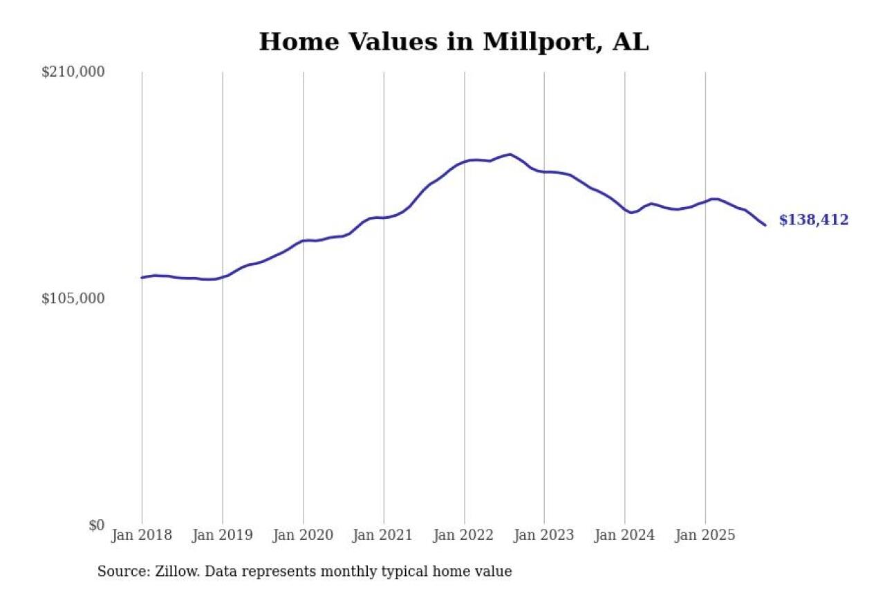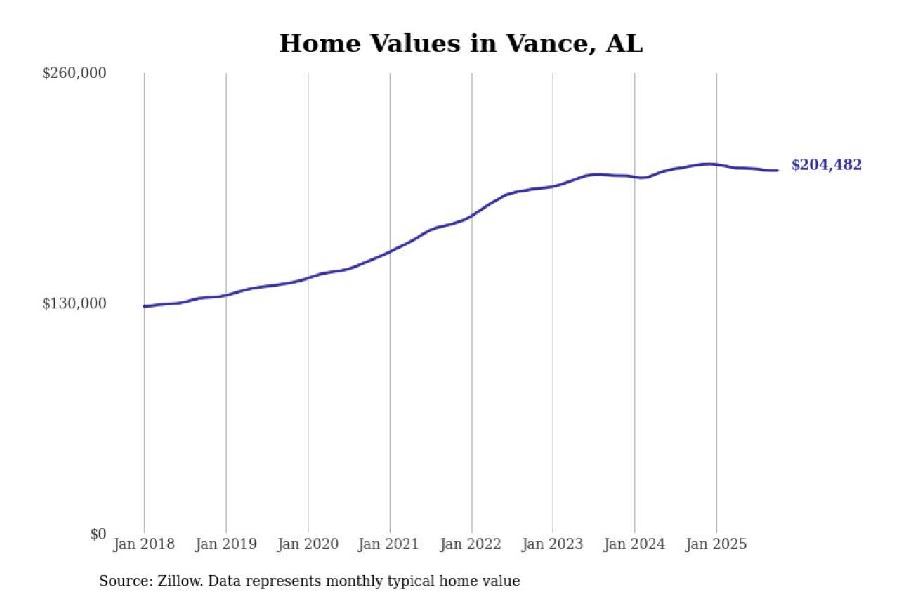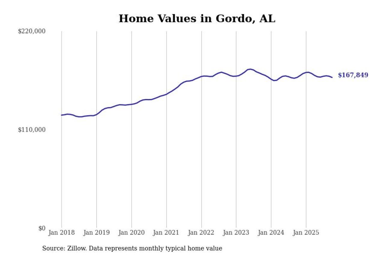 Stacker compiled a list of cities with the most expensive homes in the Tuscaloosa, AL metro area using data from Zillow. Charts show the monthly typical home value since January 2018.