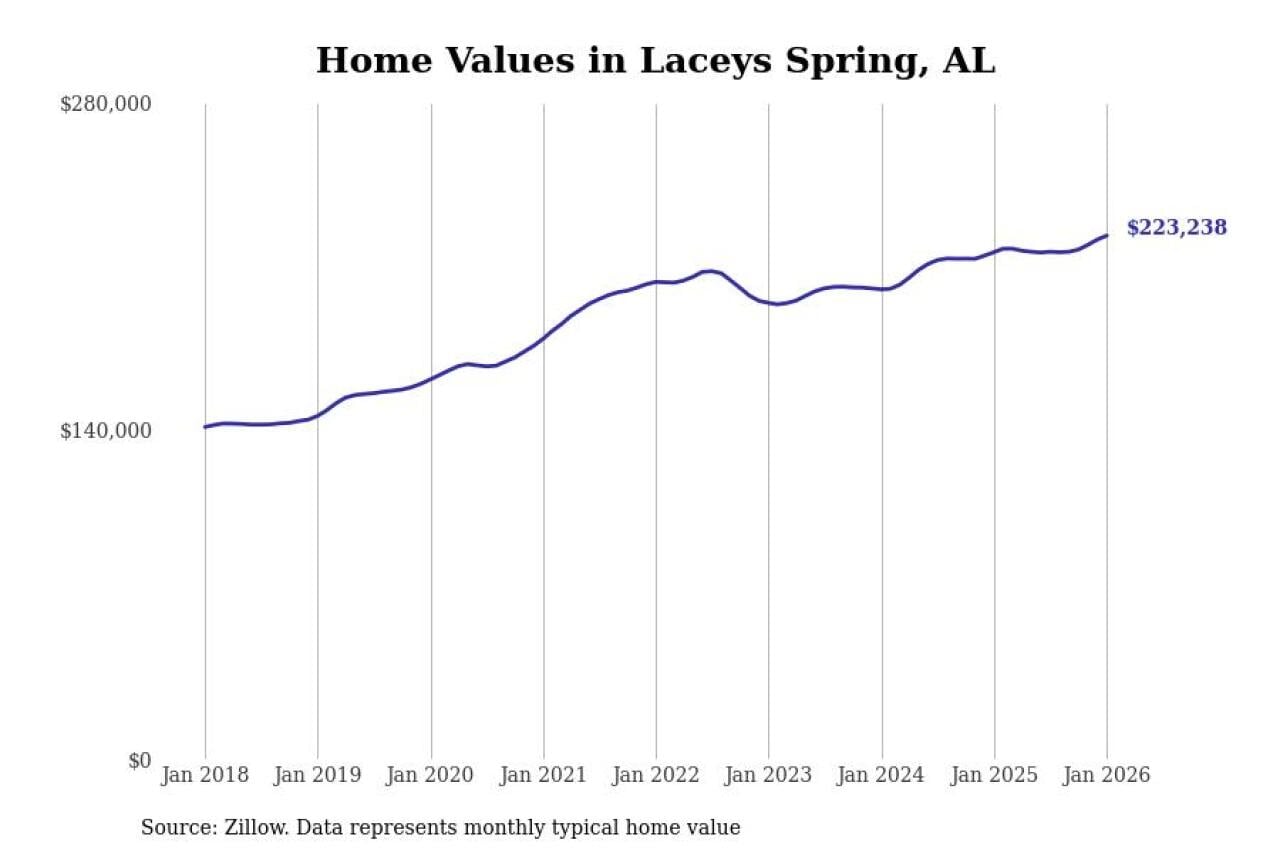 Stacker compiled a list of cities with the most expensive homes in the Decatur, AL metro area using data from Zillow. Charts show the monthly typical home value since January 2018.