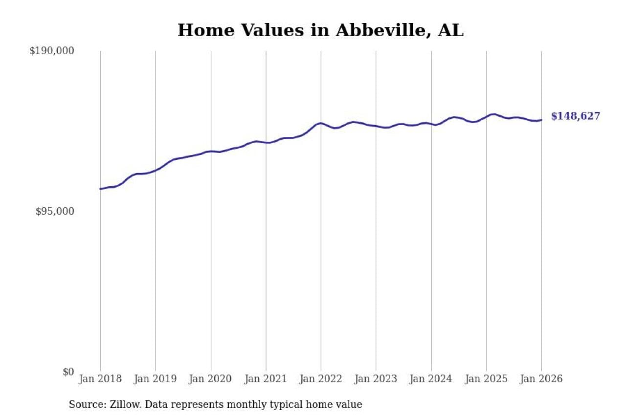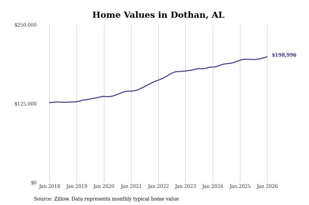 Stacker compiled a list of cities with the most expensive homes in the Dothan, AL metro area using data from Zillow. Charts show the monthly typical home value since January 2018.