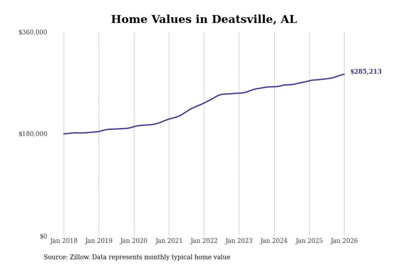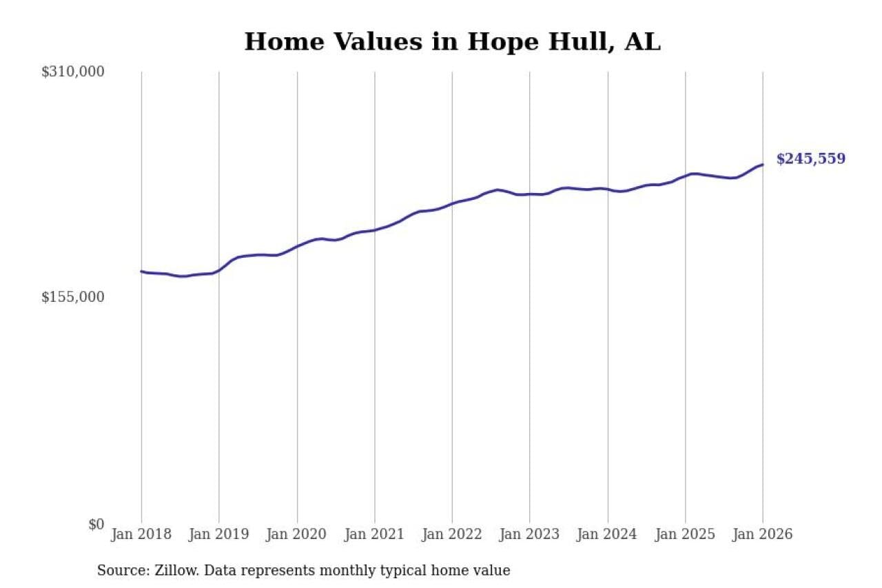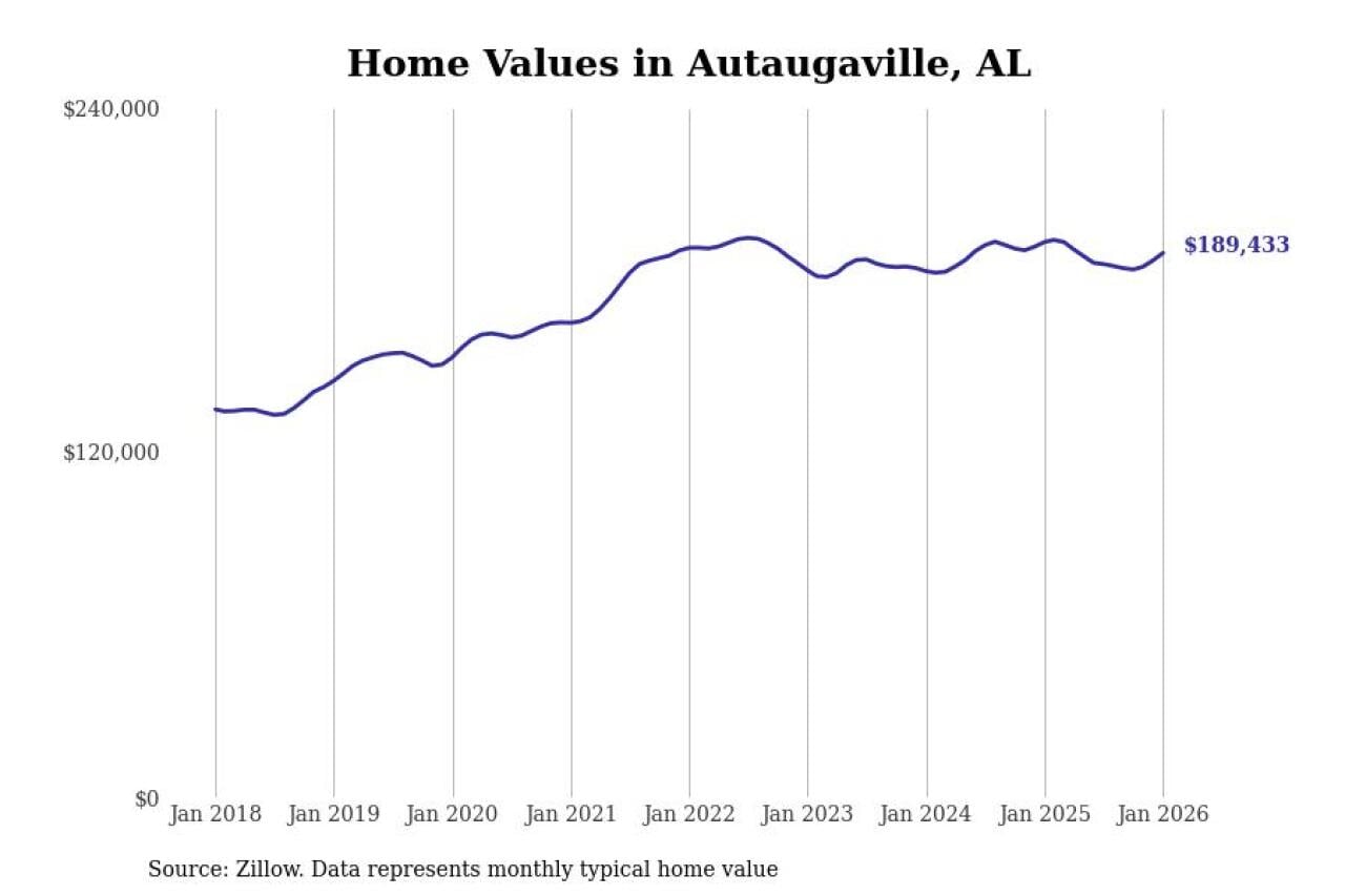 Stacker compiled a list of cities with the most expensive homes in the Montgomery, AL metro area using data from Zillow. Charts show the monthly typical home value since January 2018.
