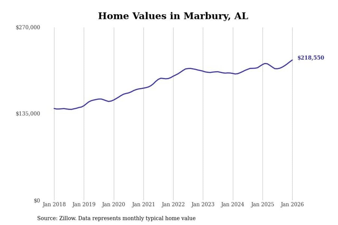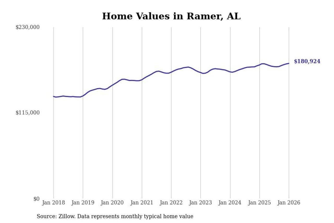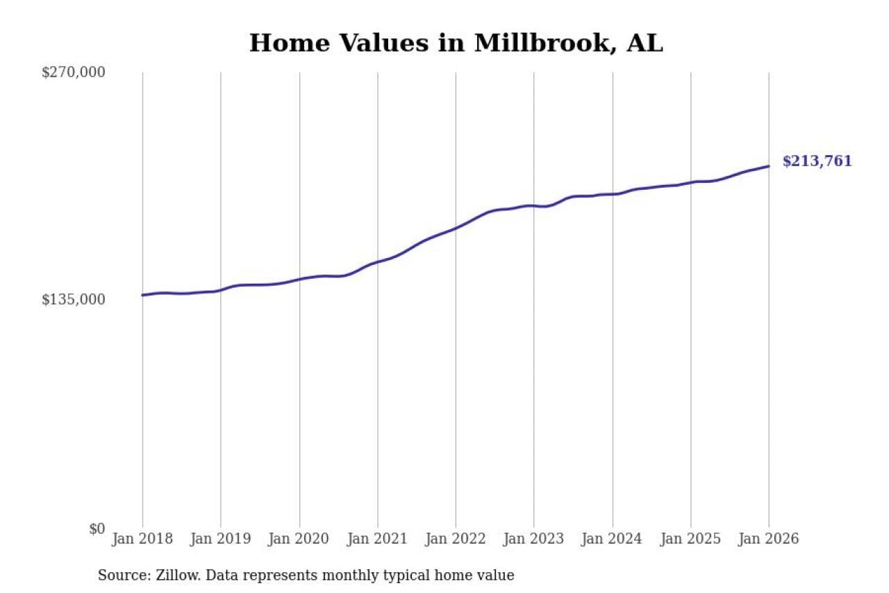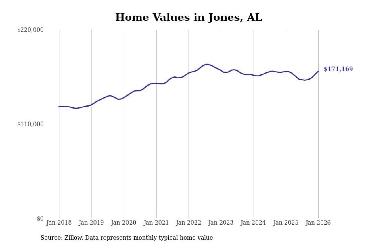 Stacker compiled a list of cities with the most expensive homes in the Montgomery, AL metro area using data from Zillow. Charts show the monthly typical home value since January 2018.