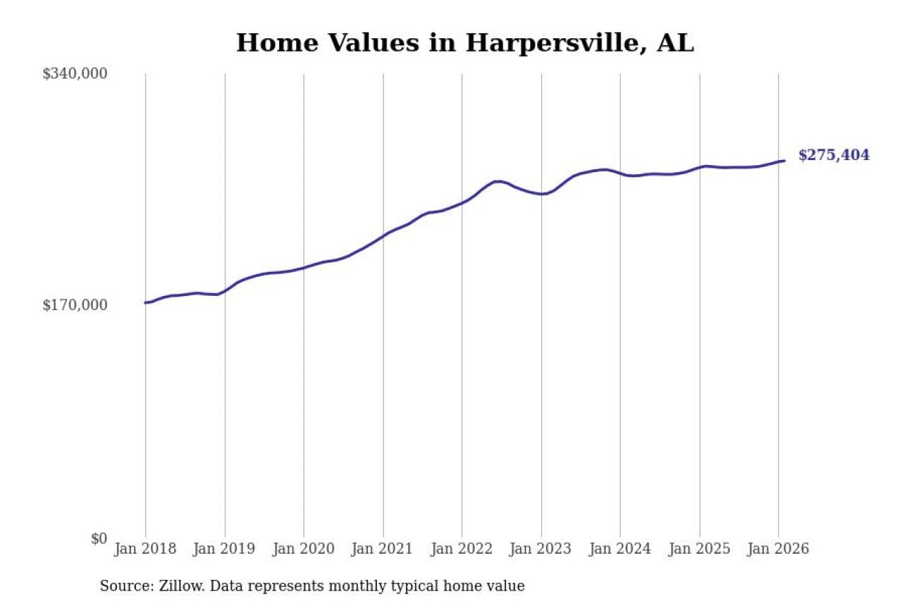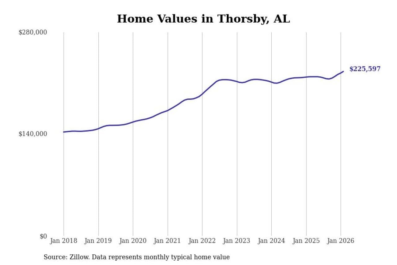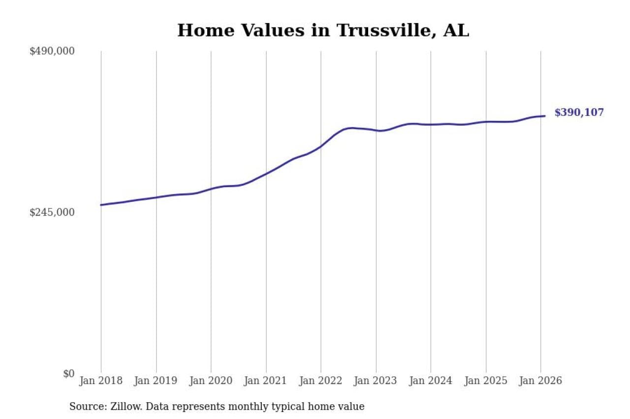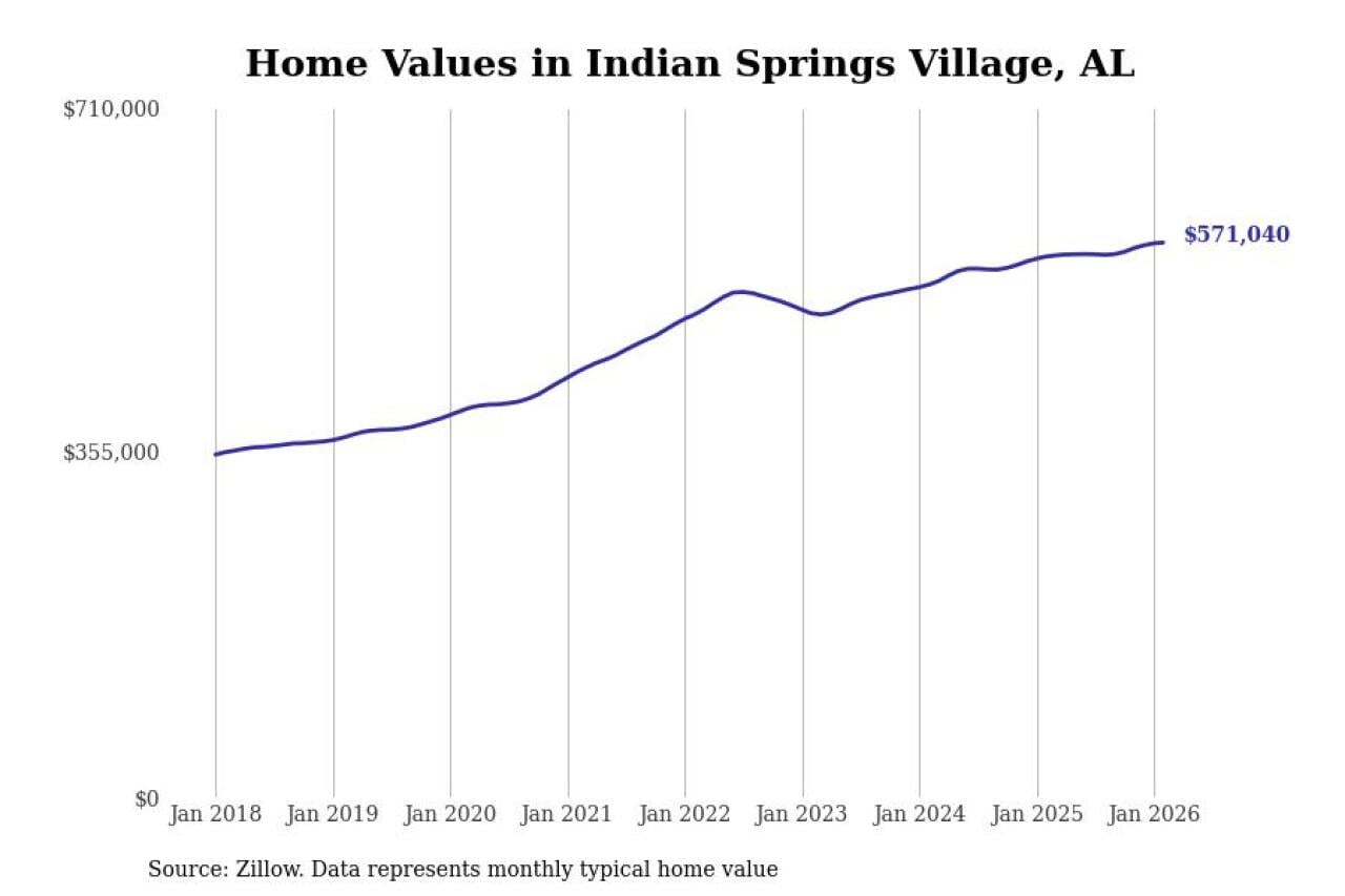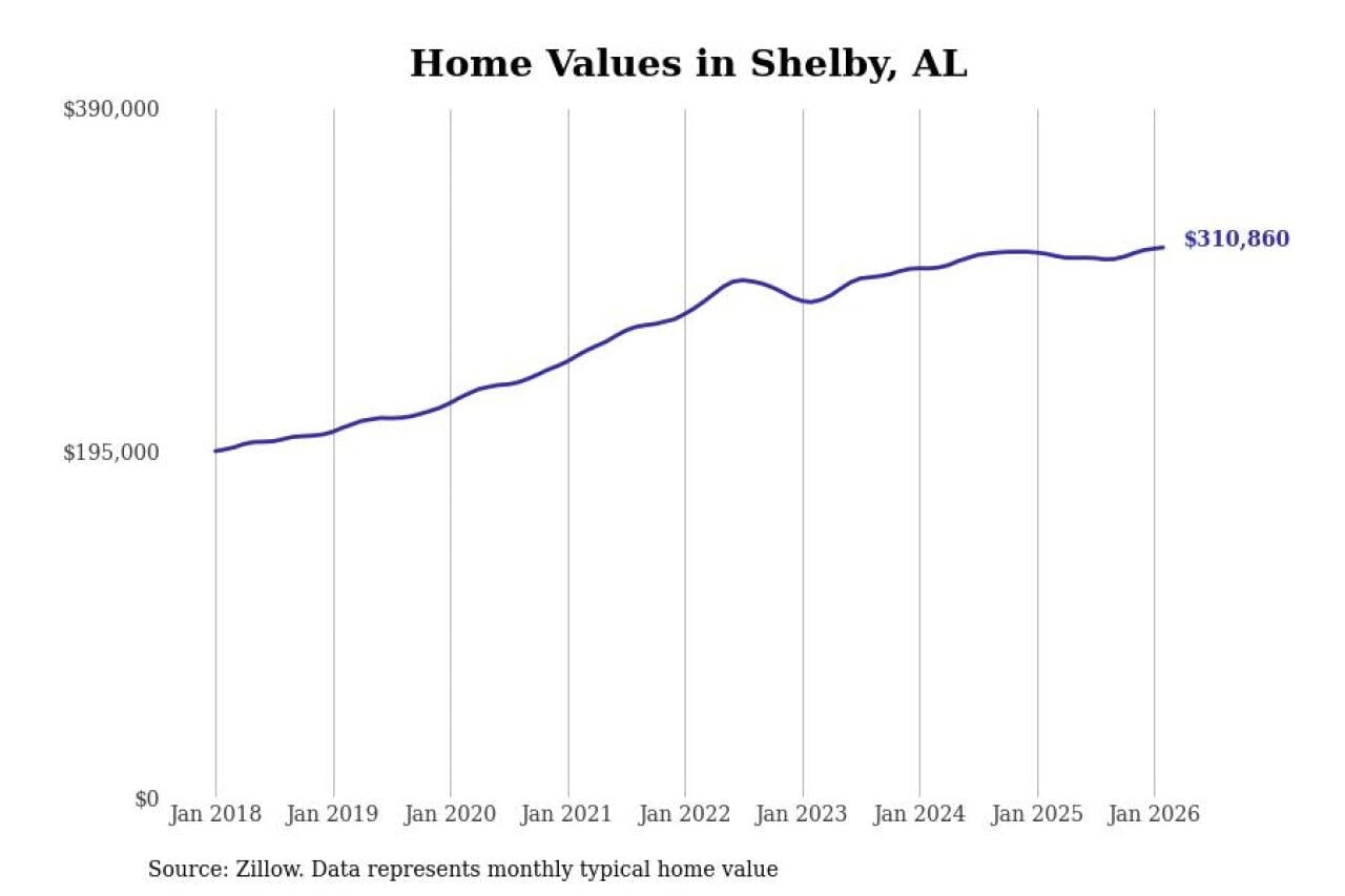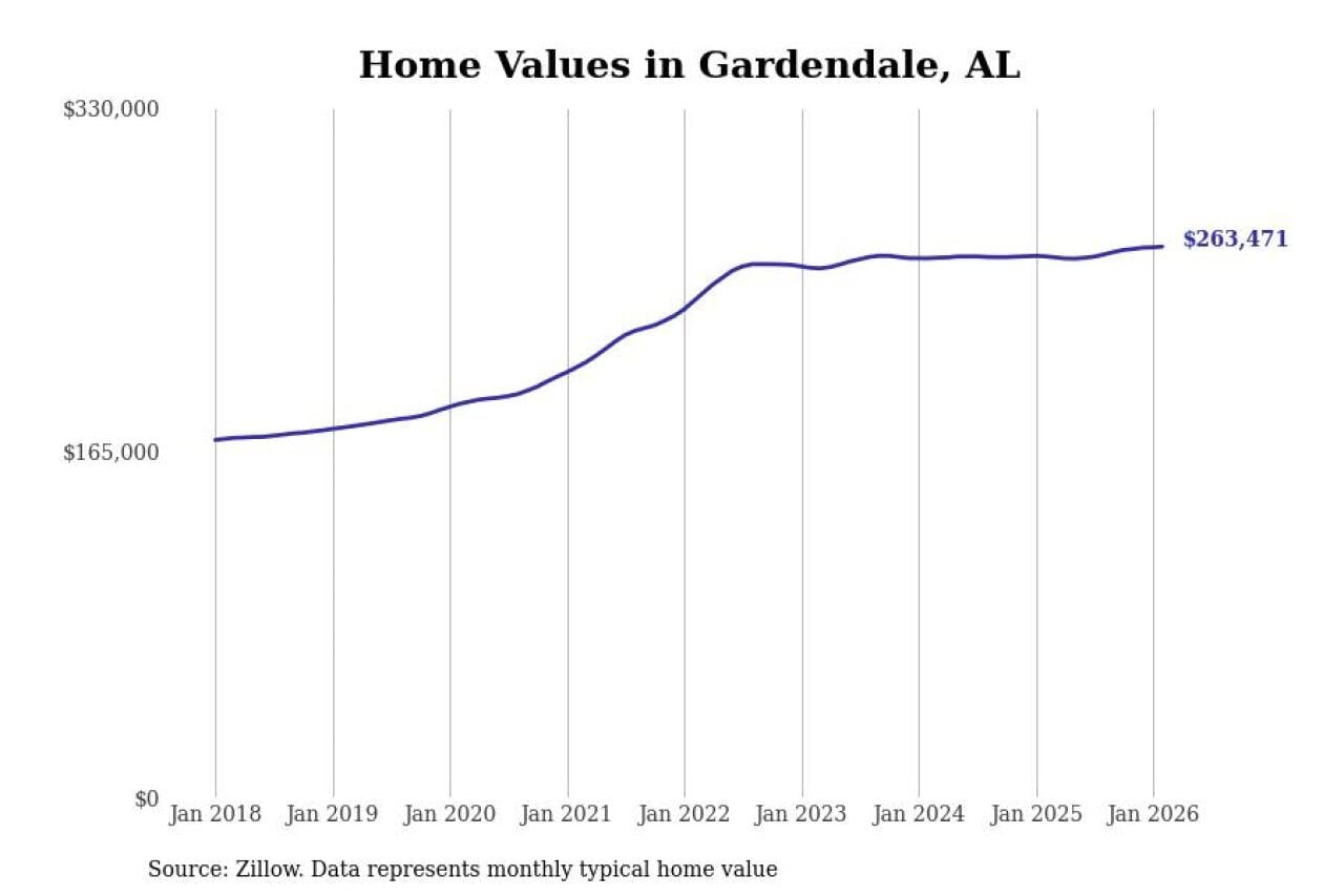Stacker compiled a list of cities with the most expensive homes in the Birmingham-Hoover, AL metro area using data from Zillow. Charts show the monthly typical home value since January 2018.