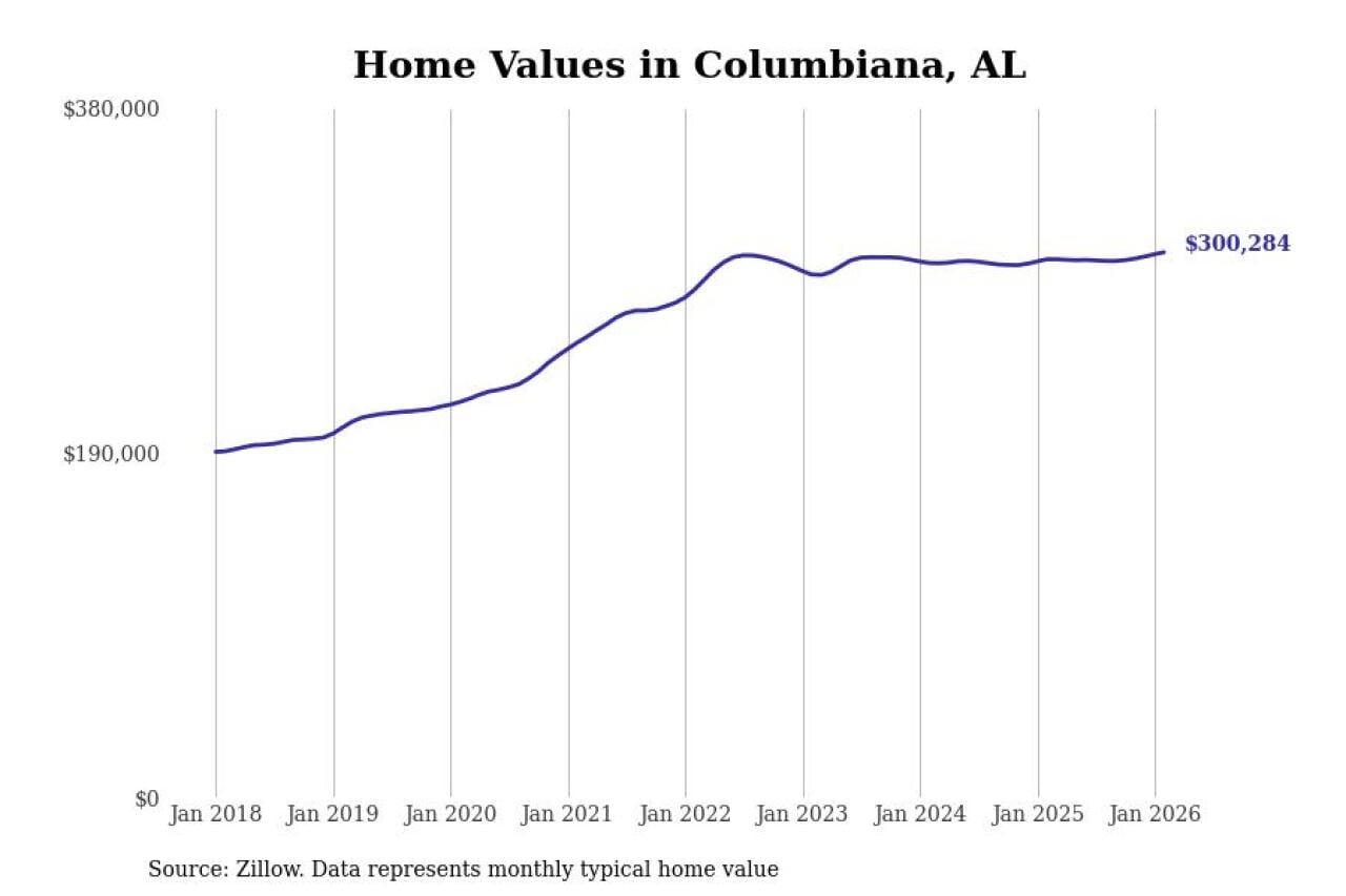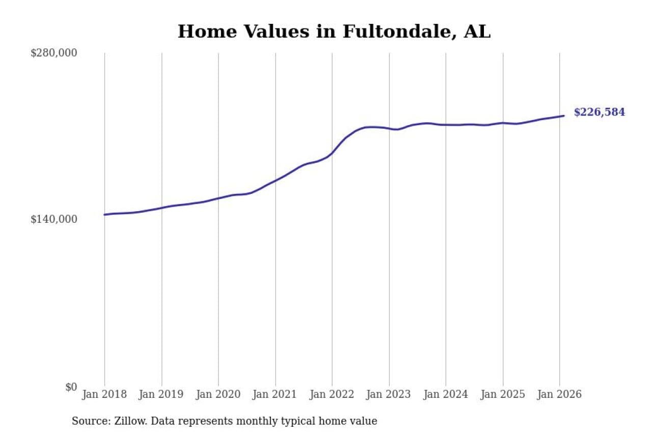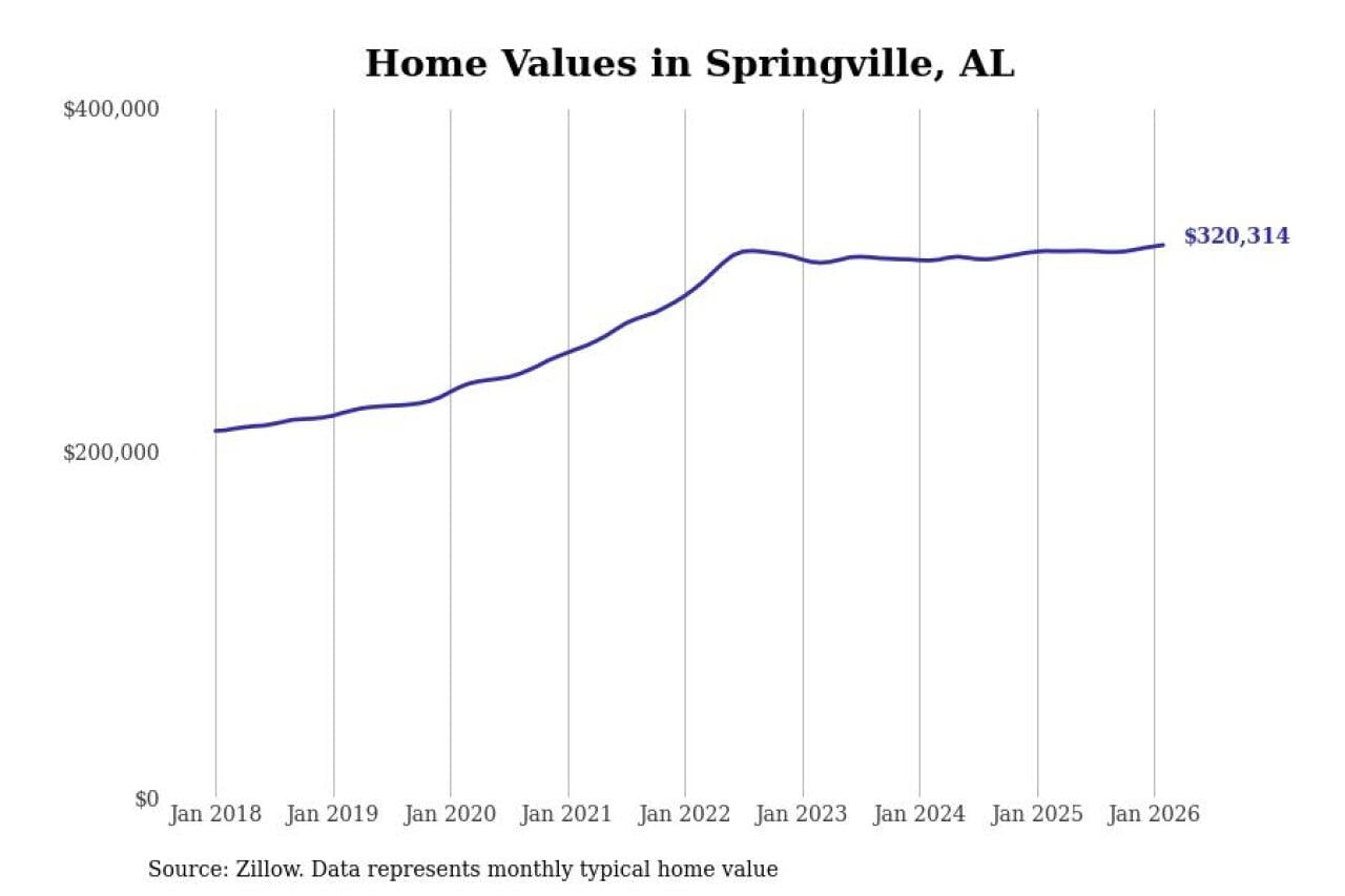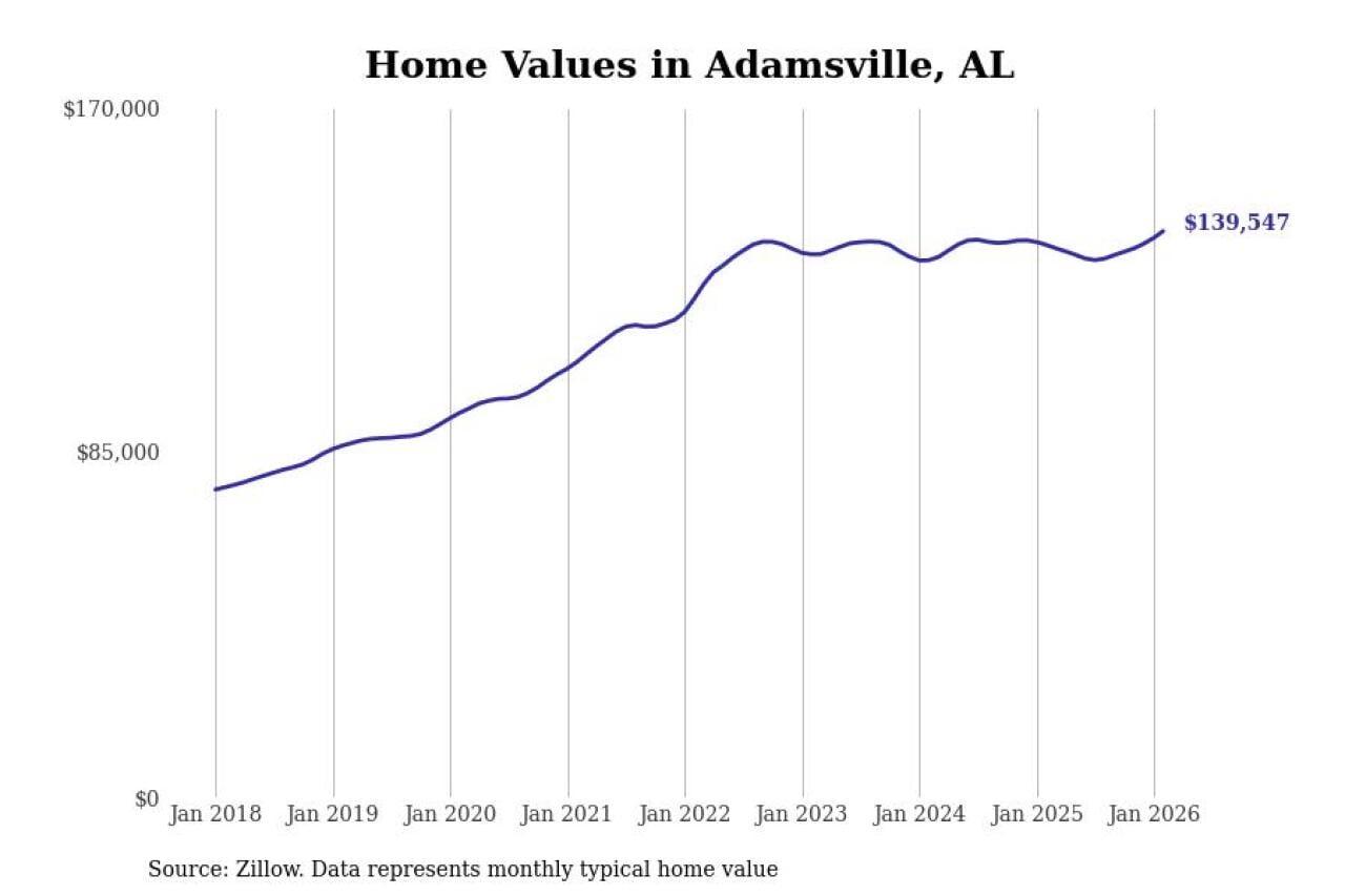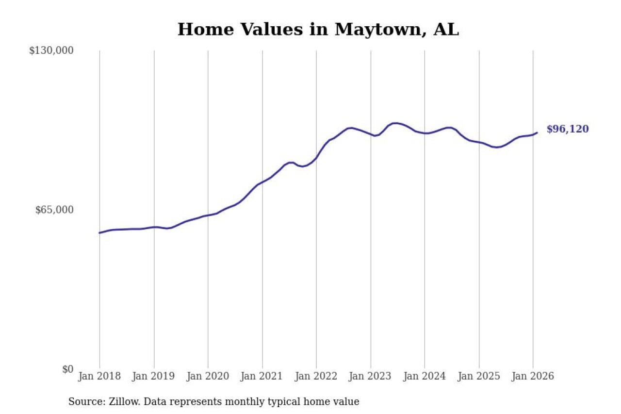 Stacker compiled a list of cities with the most expensive homes in the Birmingham-Hoover, AL metro area using data from Zillow. Charts show the monthly typical home value since January 2018.