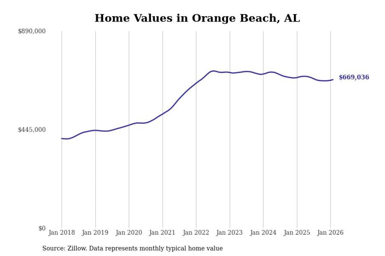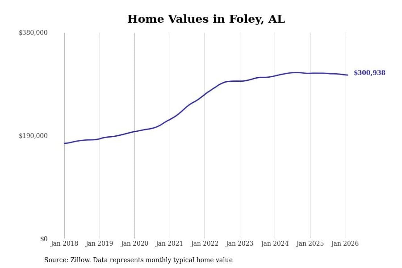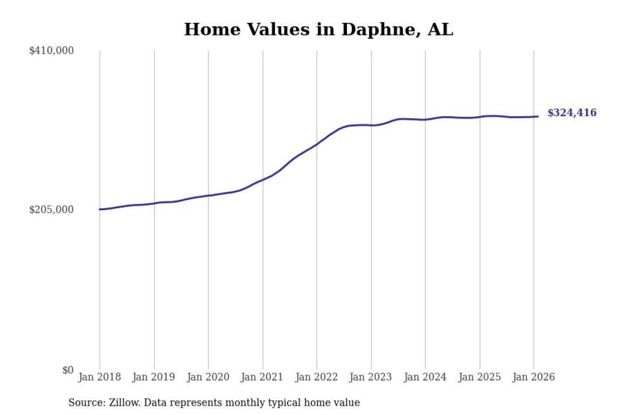 Stacker compiled a list of cities with the most expensive homes in the Daphne-Fairhope-Foley, AL metro area using data from Zillow. Charts show the monthly typical home value since January 2018.