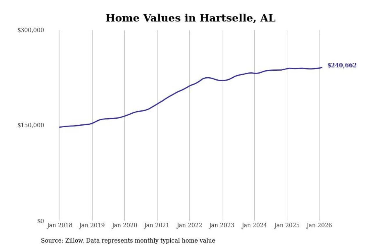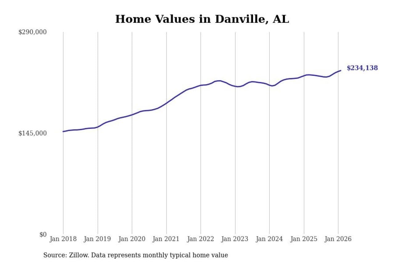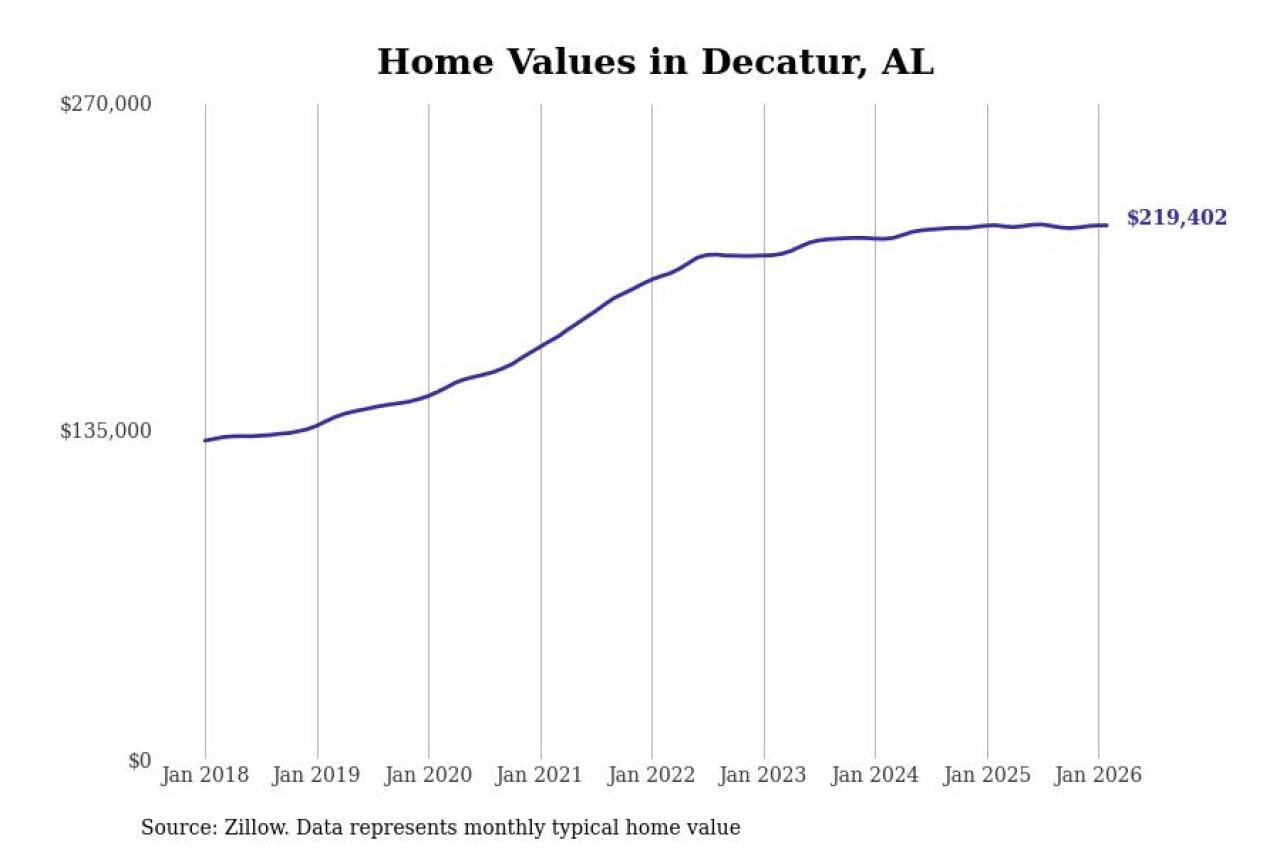 Stacker compiled a list of cities with the most expensive homes in the Decatur, AL metro area using data from Zillow. Charts show the monthly typical home value since January 2018.