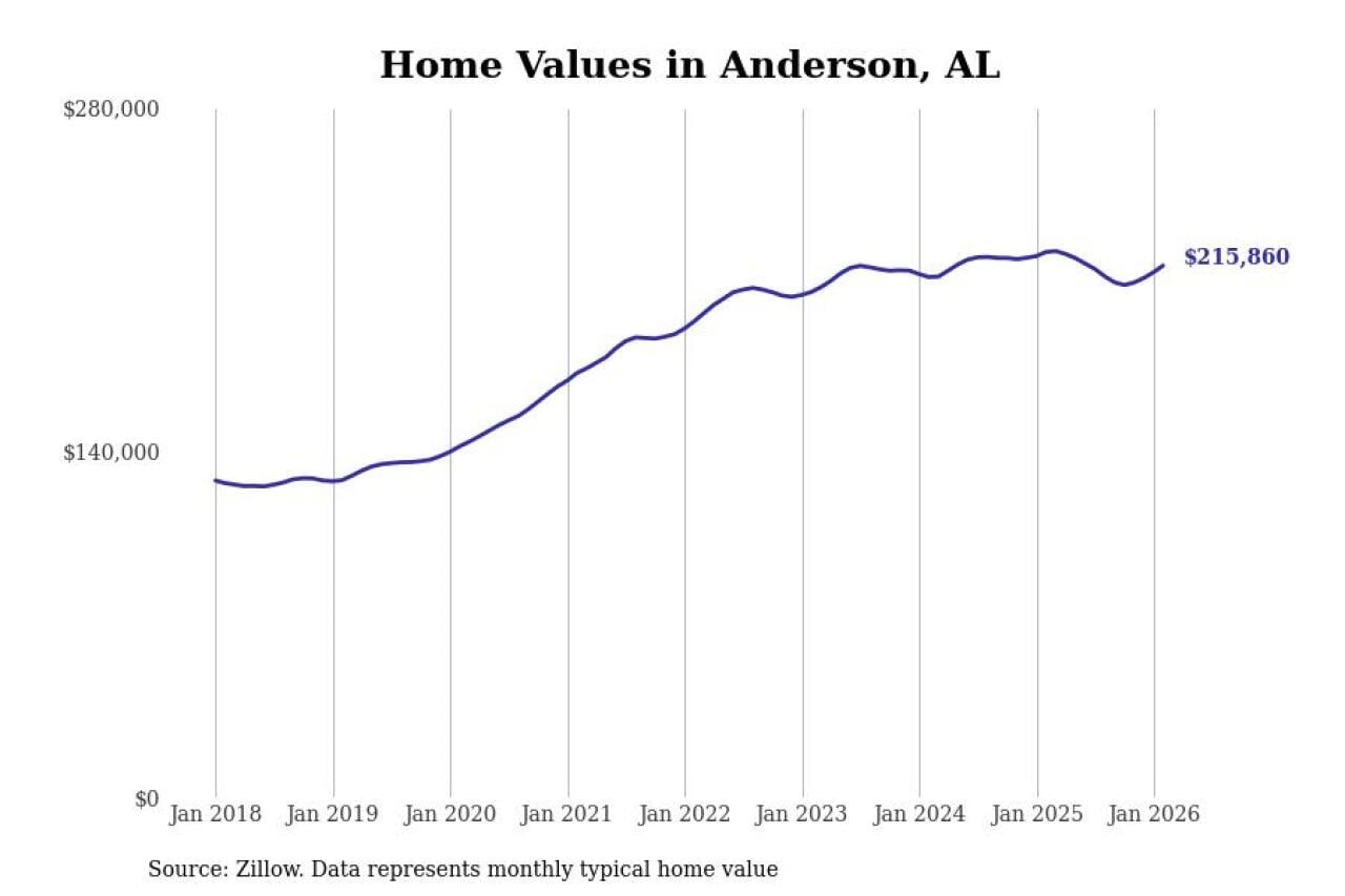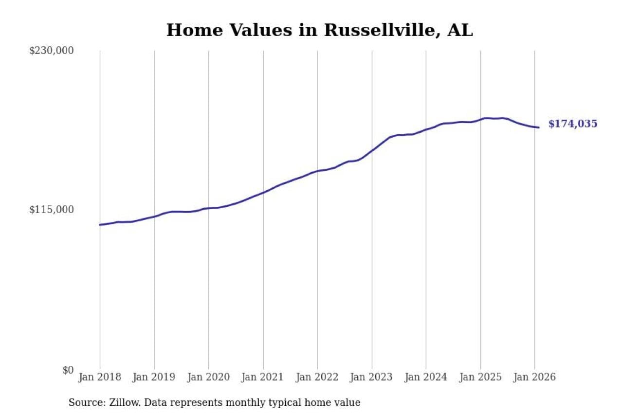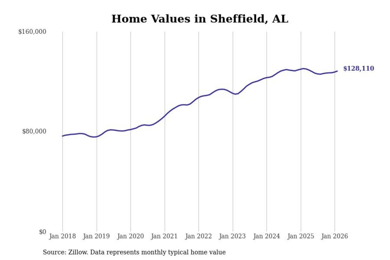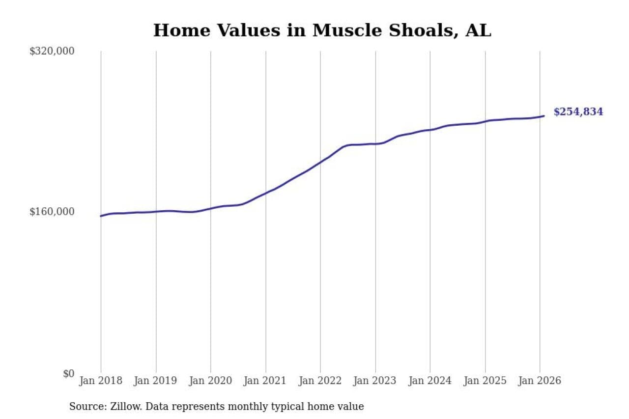 Stacker compiled a list of cities with the most expensive homes in the Florence-Muscle Shoals, AL metro area using data from Zillow. Charts show the monthly typical home value since January 2018.