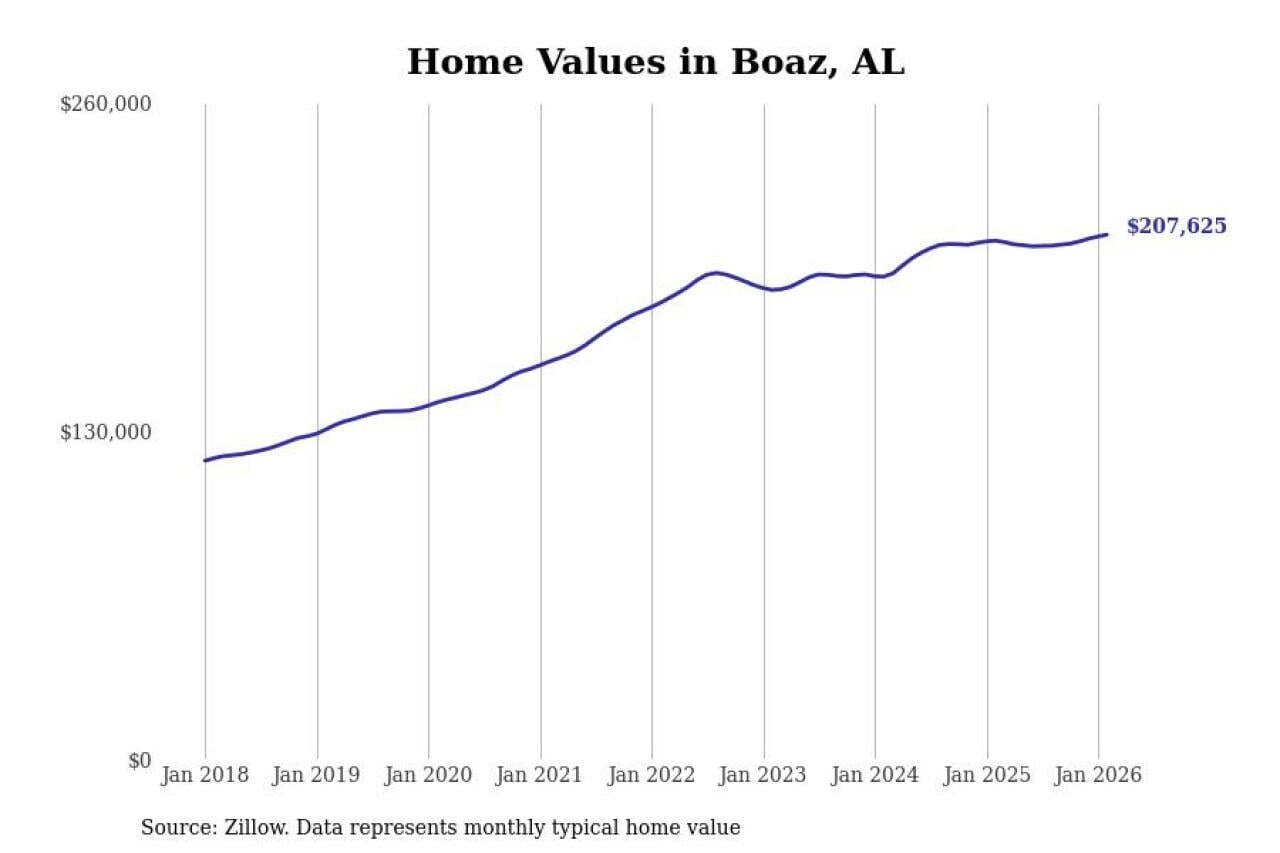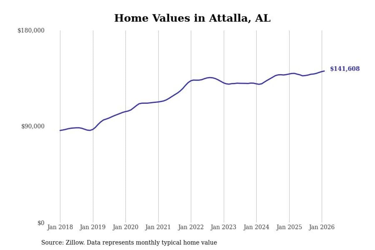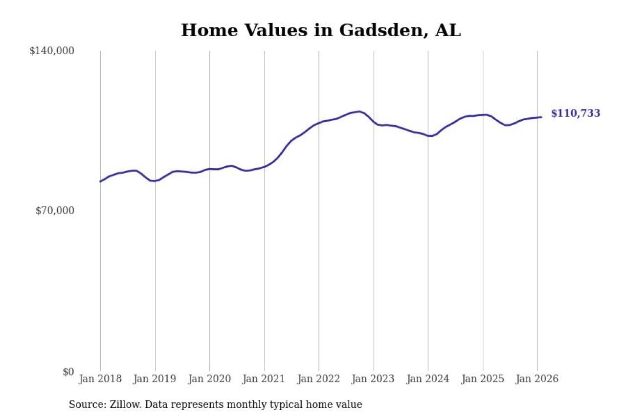 Stacker compiled a list of cities with the most expensive homes in the Gadsden, AL metro area using data from Zillow. Charts show the monthly typical home value since January 2018.
